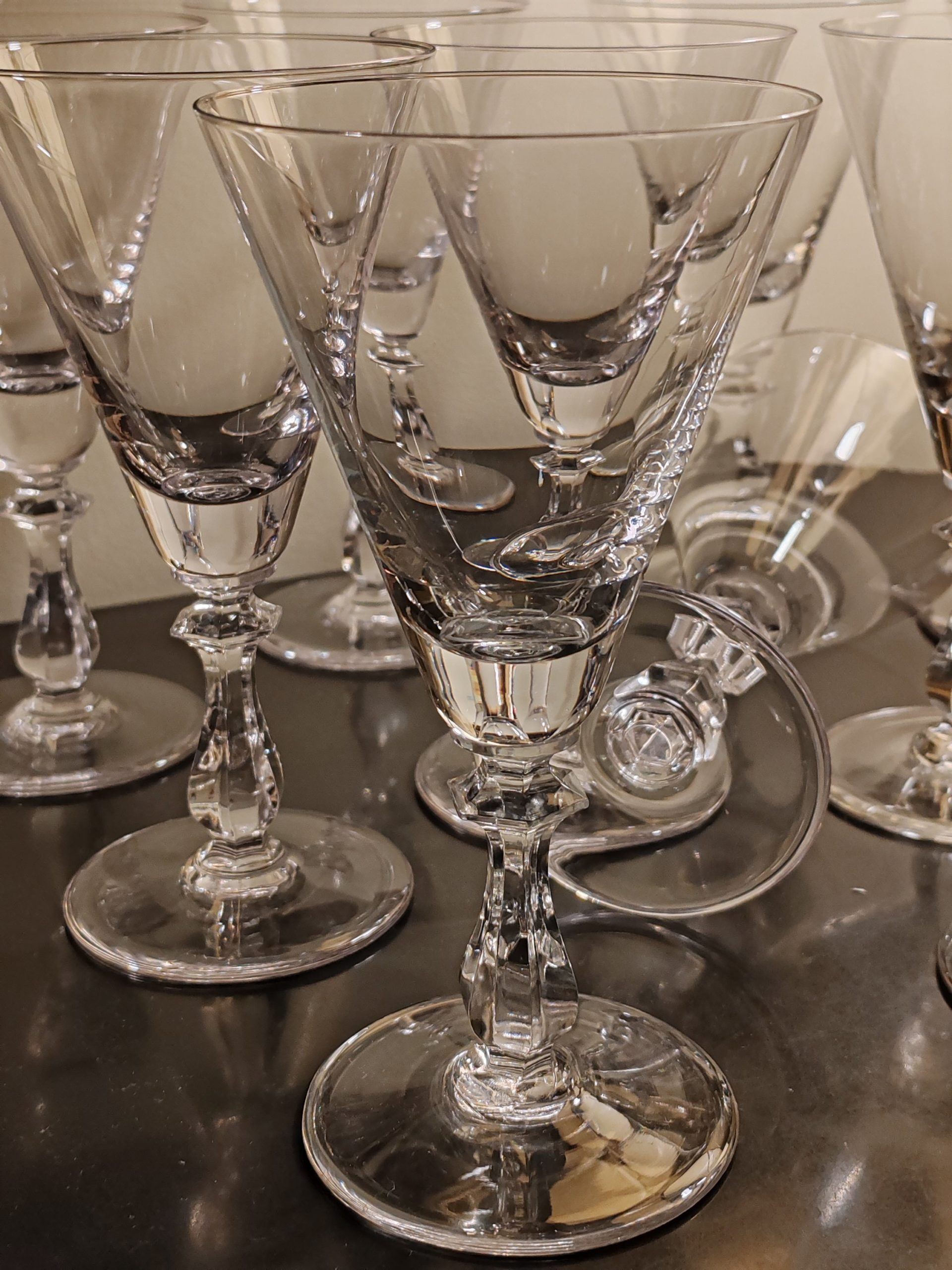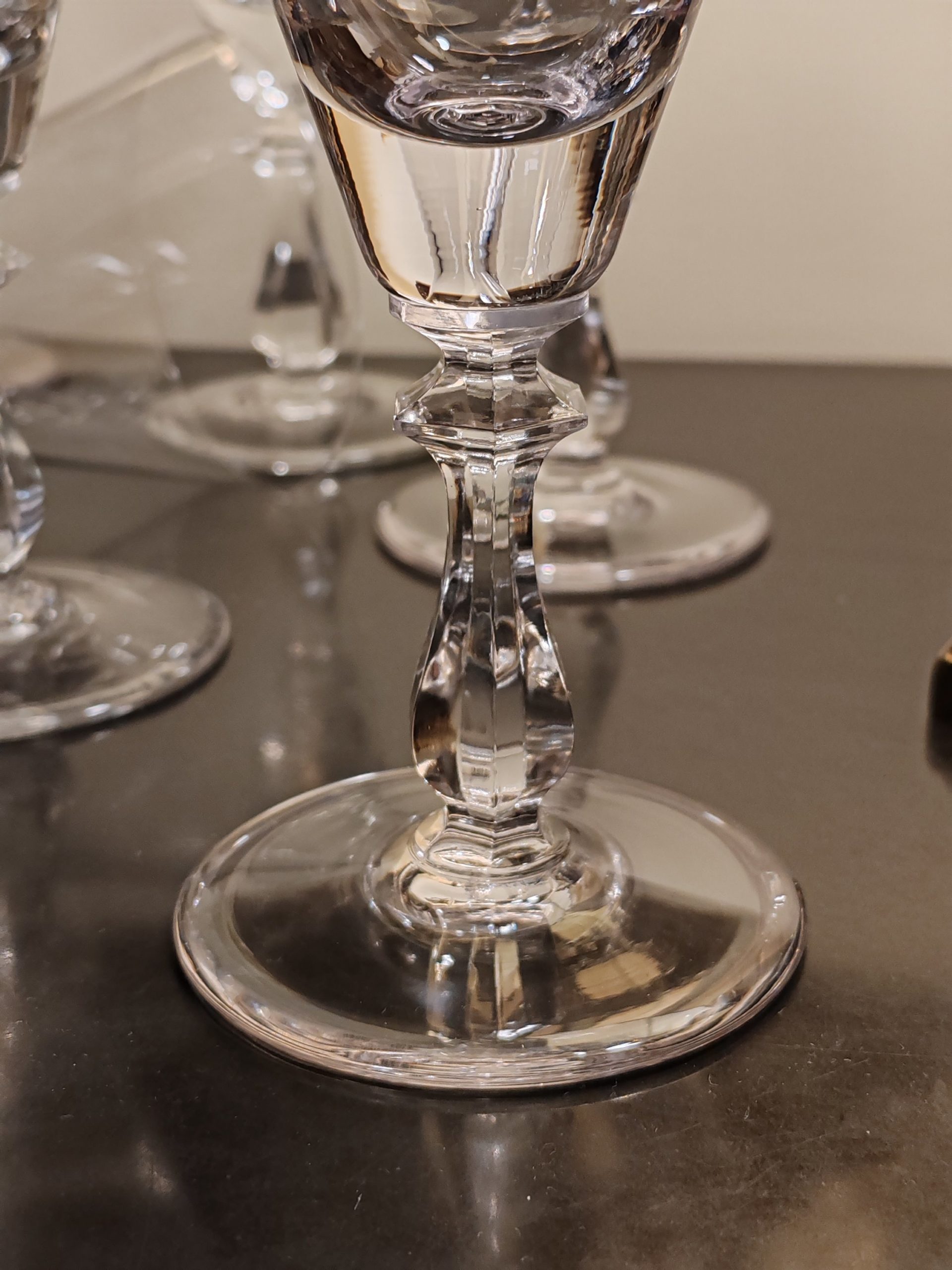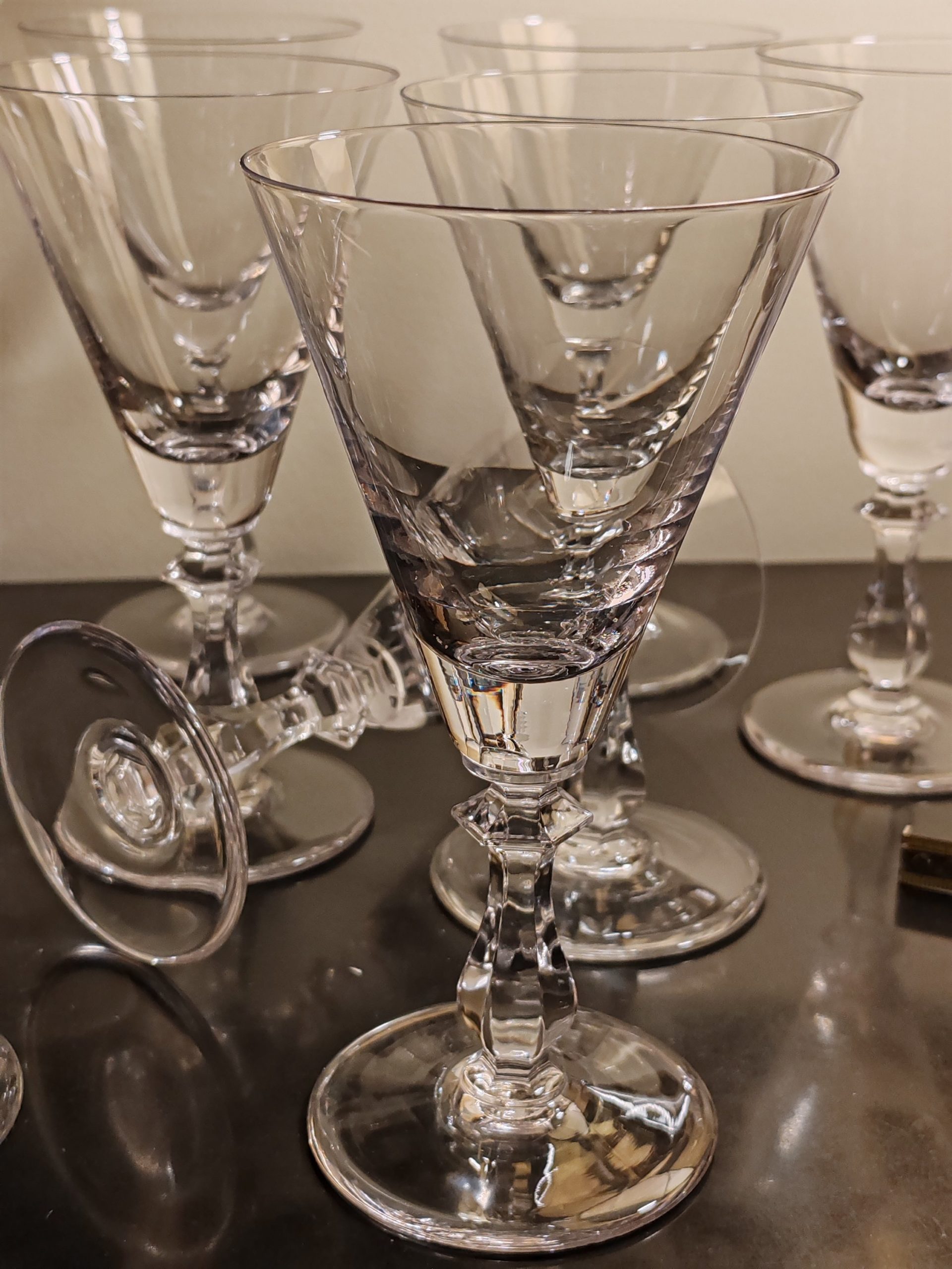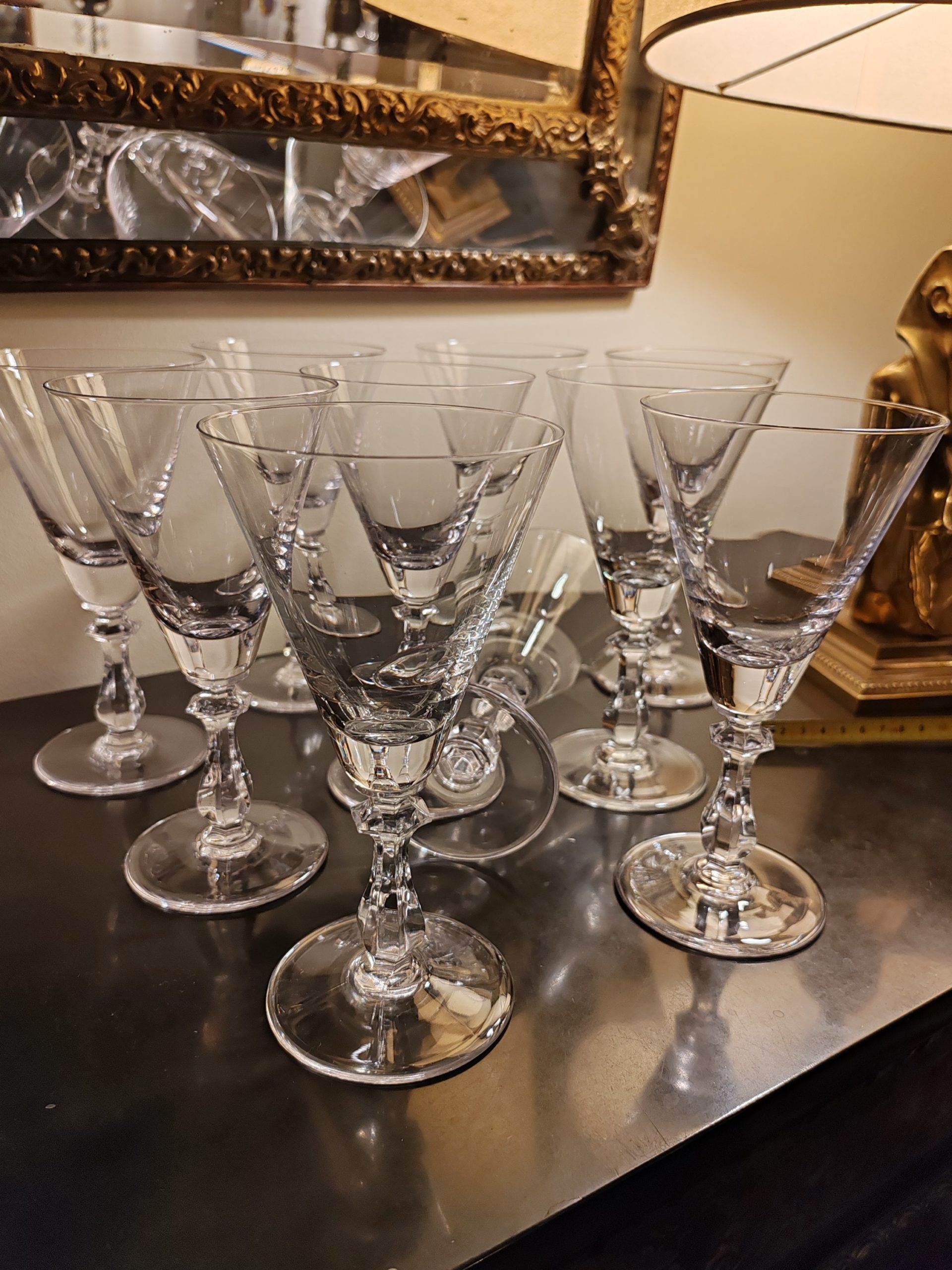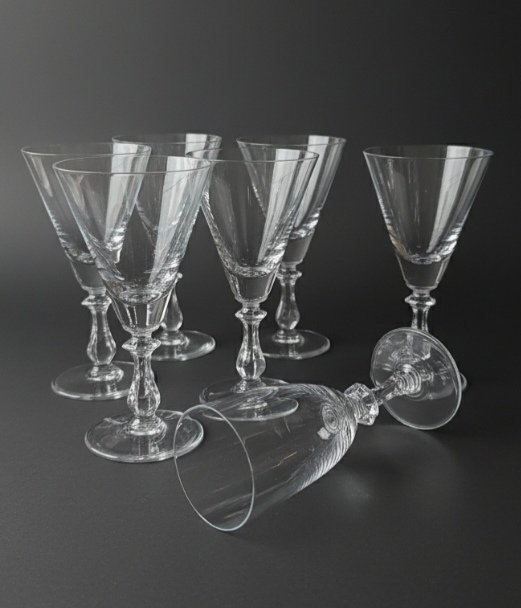 10 Verres sur pied en Cristal de la Verrerie de Vannes-Le-Châtel dans le giron de DAUM depuis 1986 où ont lieu également les productions de la société mère (DAUM)