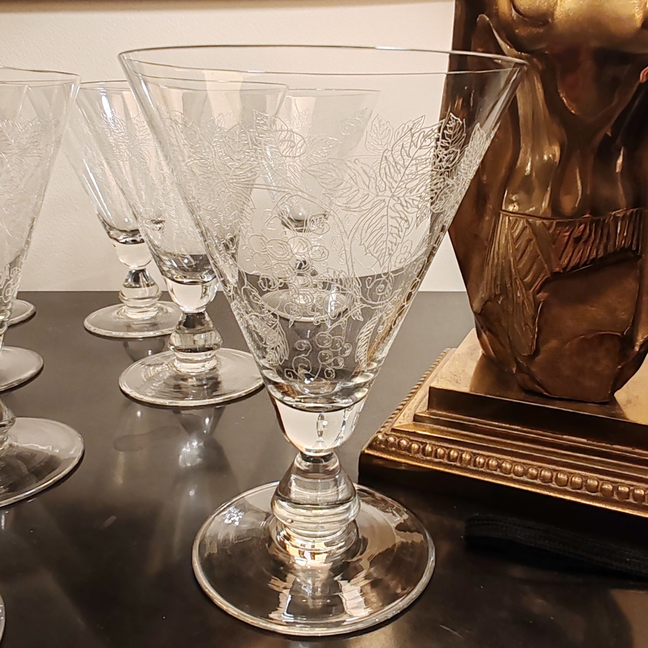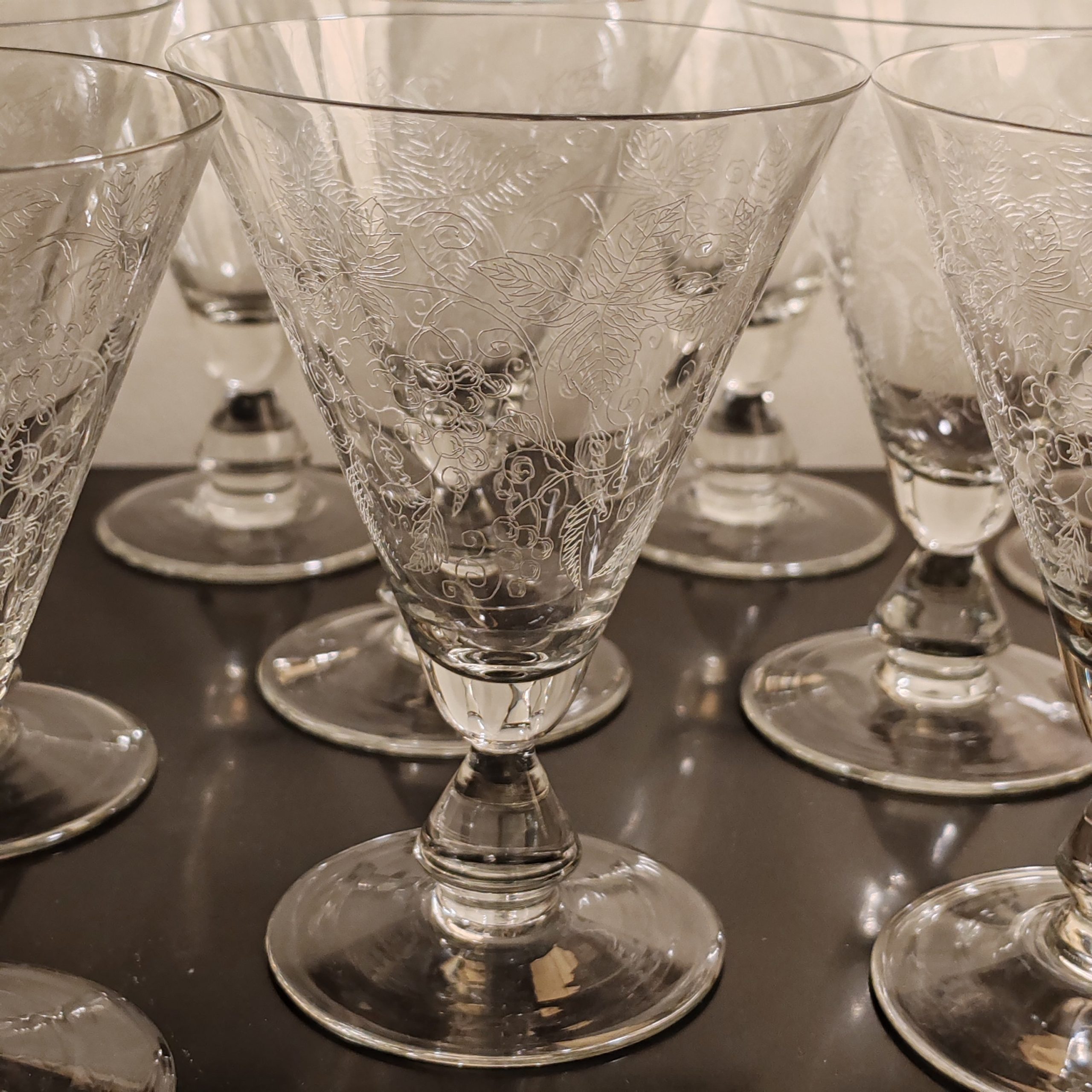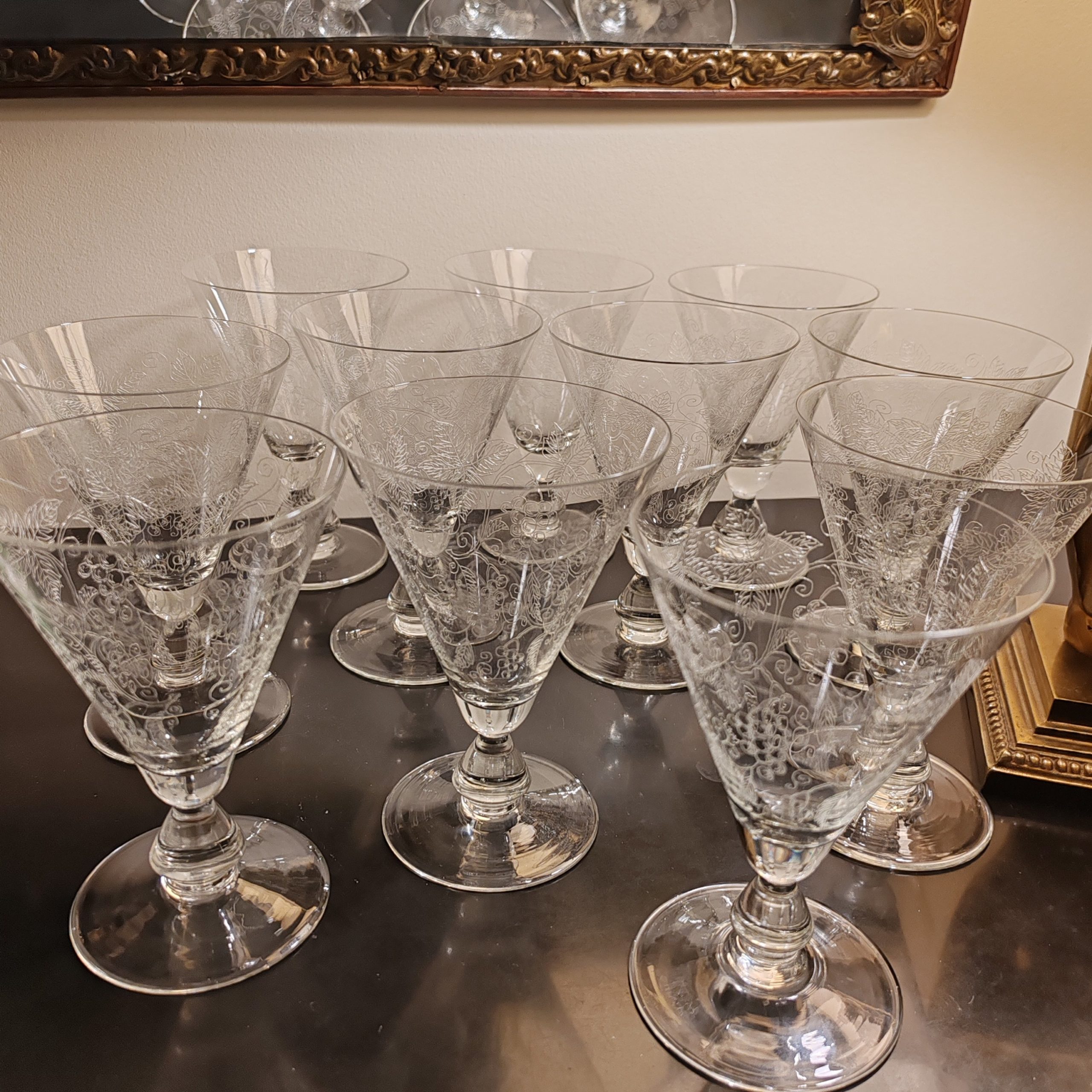 11 Verres sur pied Période Art Déco en Cristal Gravé Hauteur 13,5 cm