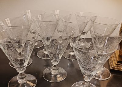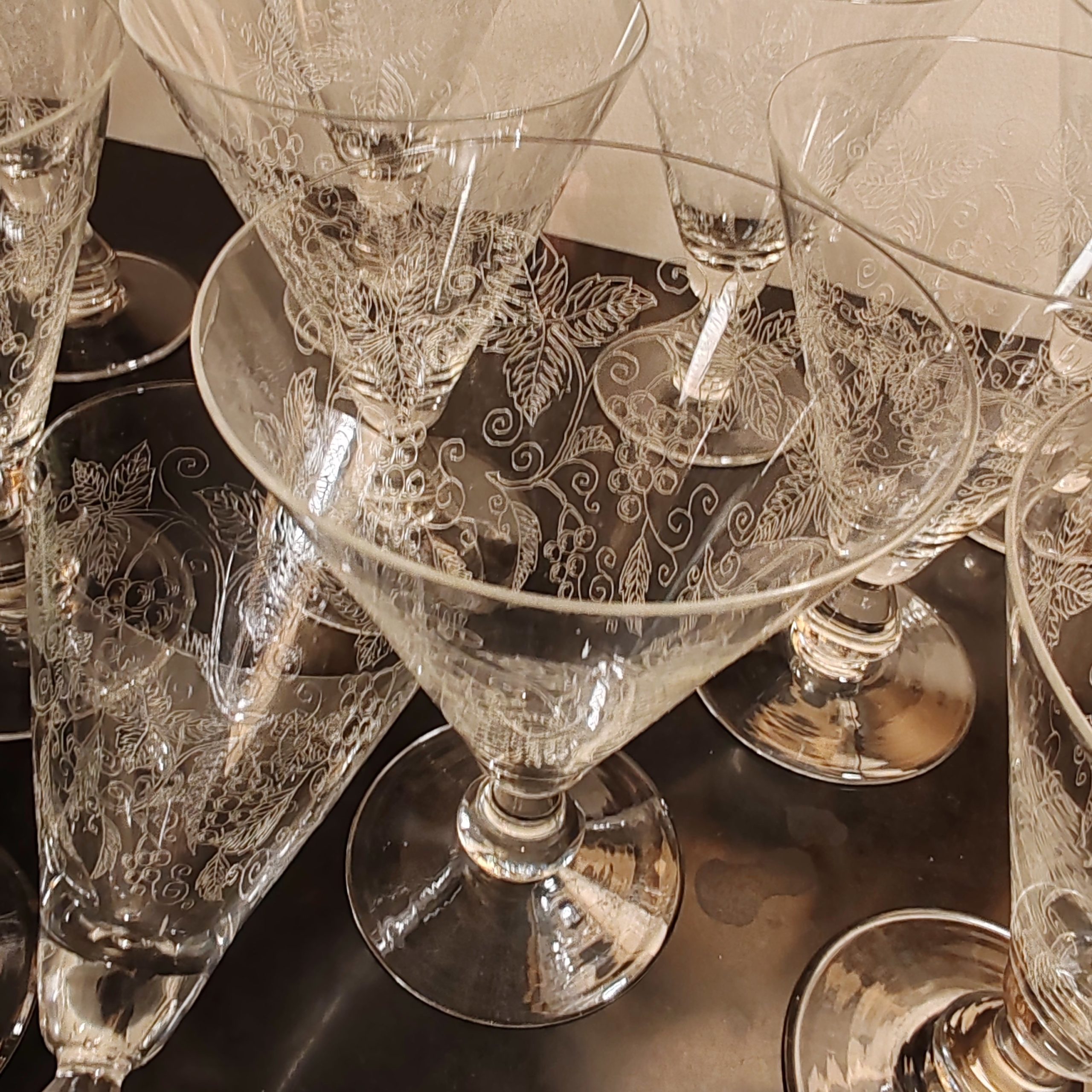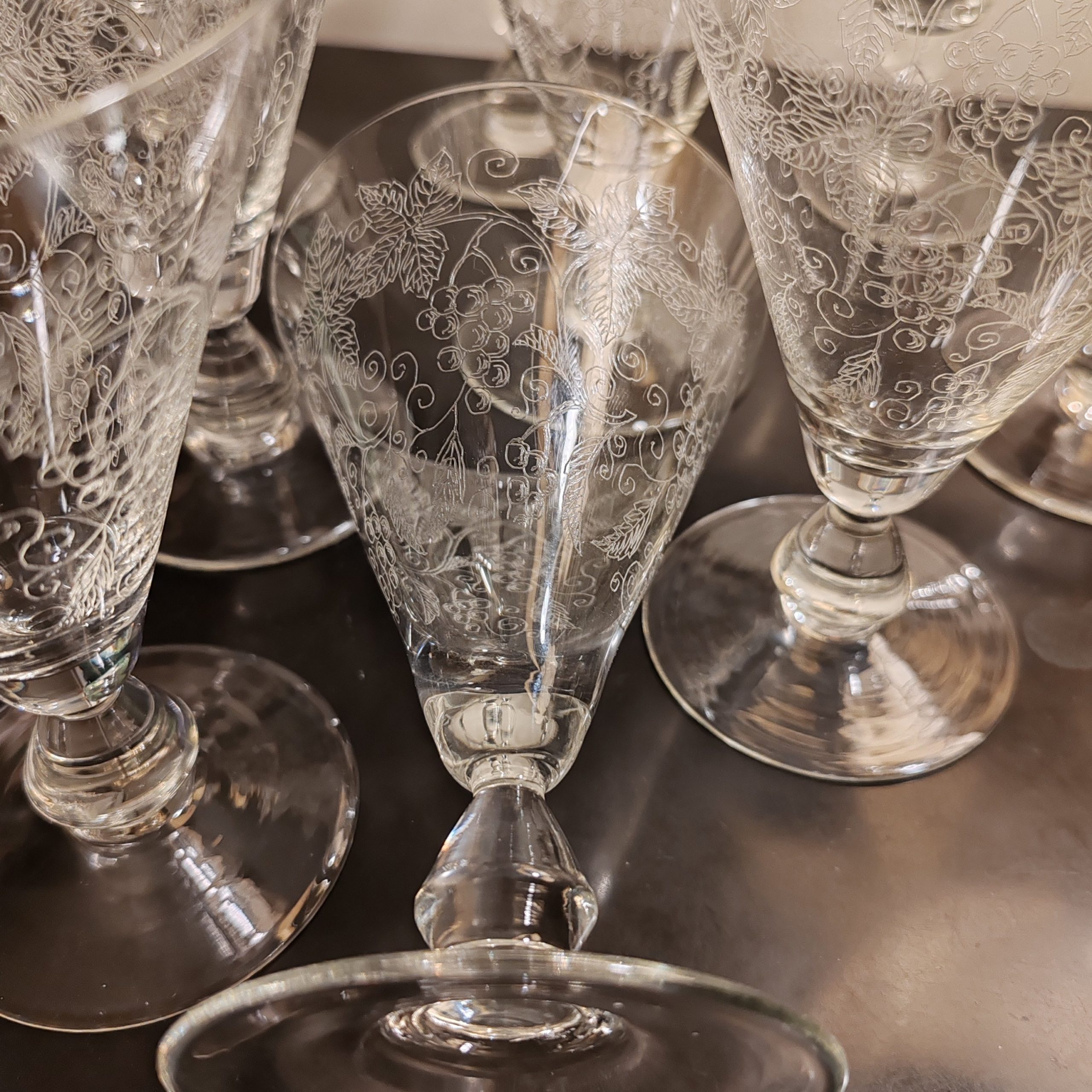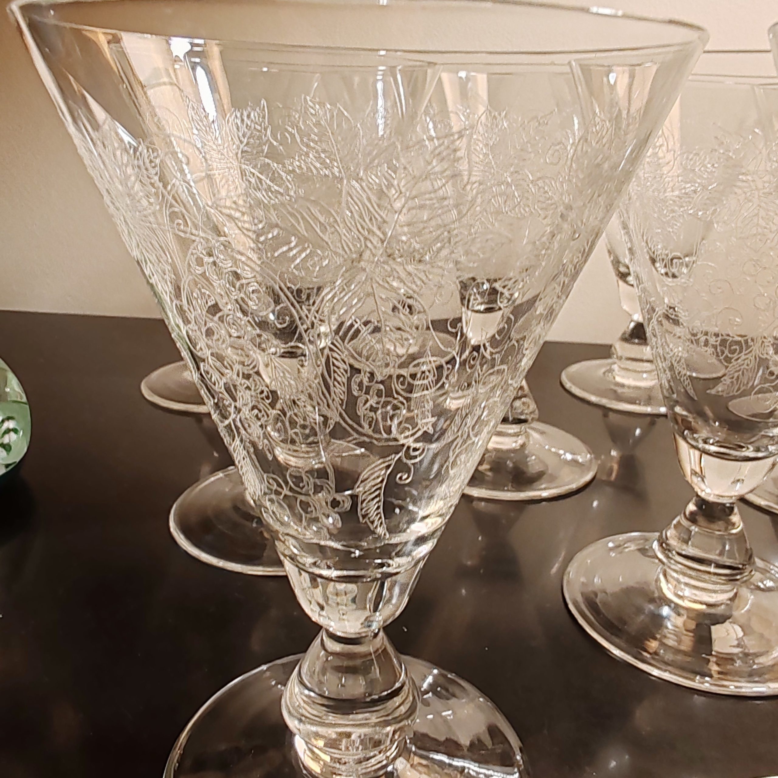 11 Verres sur pied Période Art Déco en Cristal Gravé Hauteur 13,5 cm
