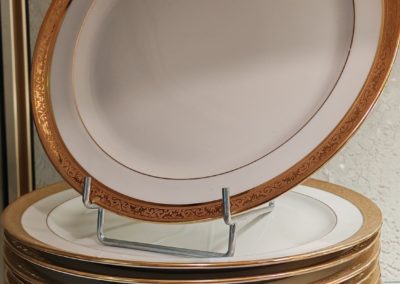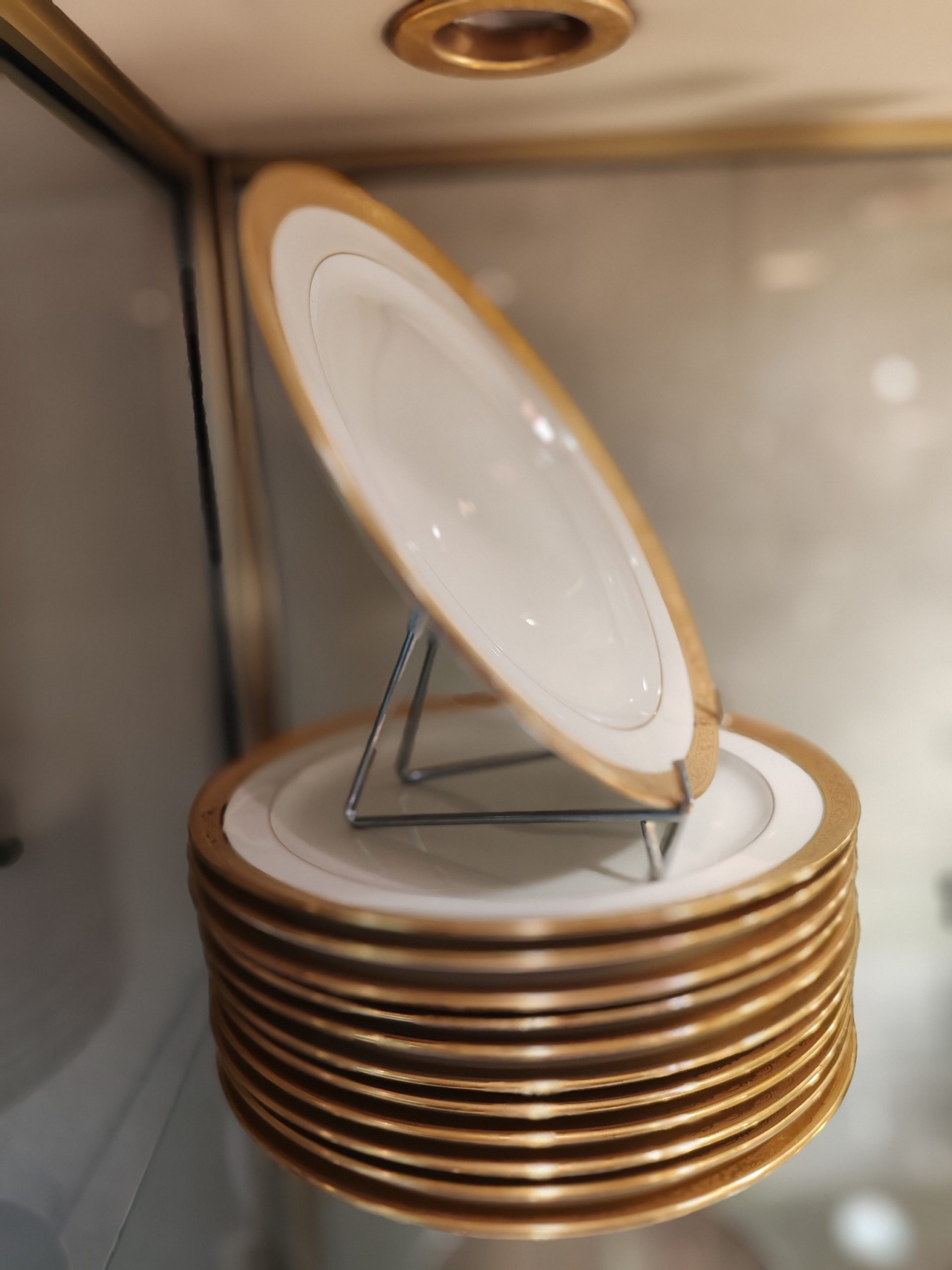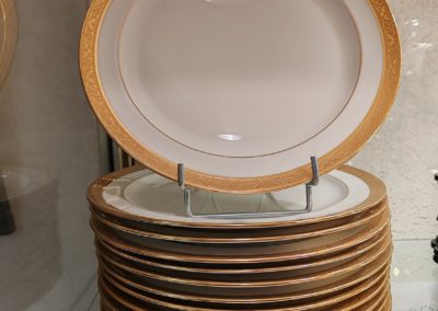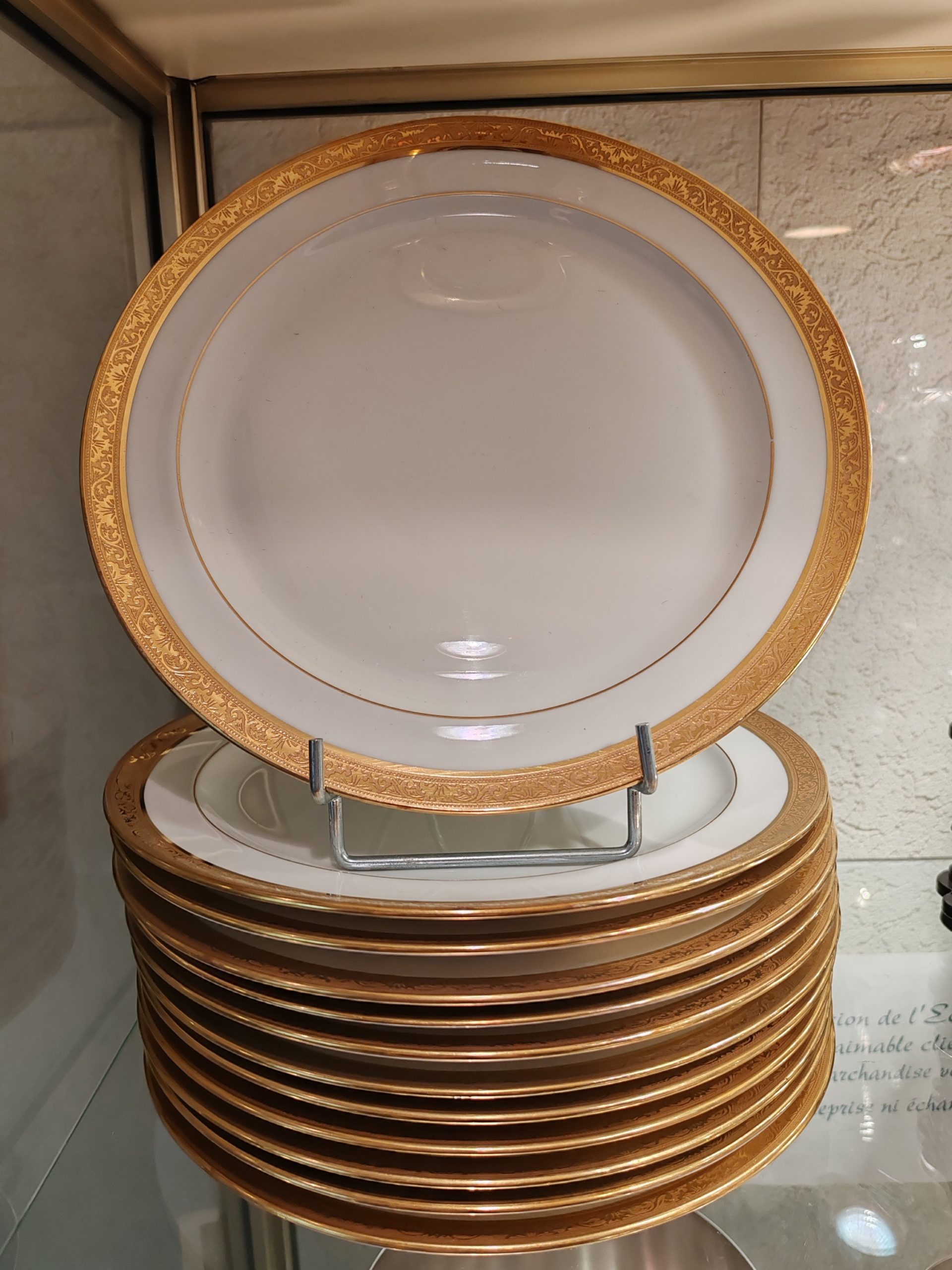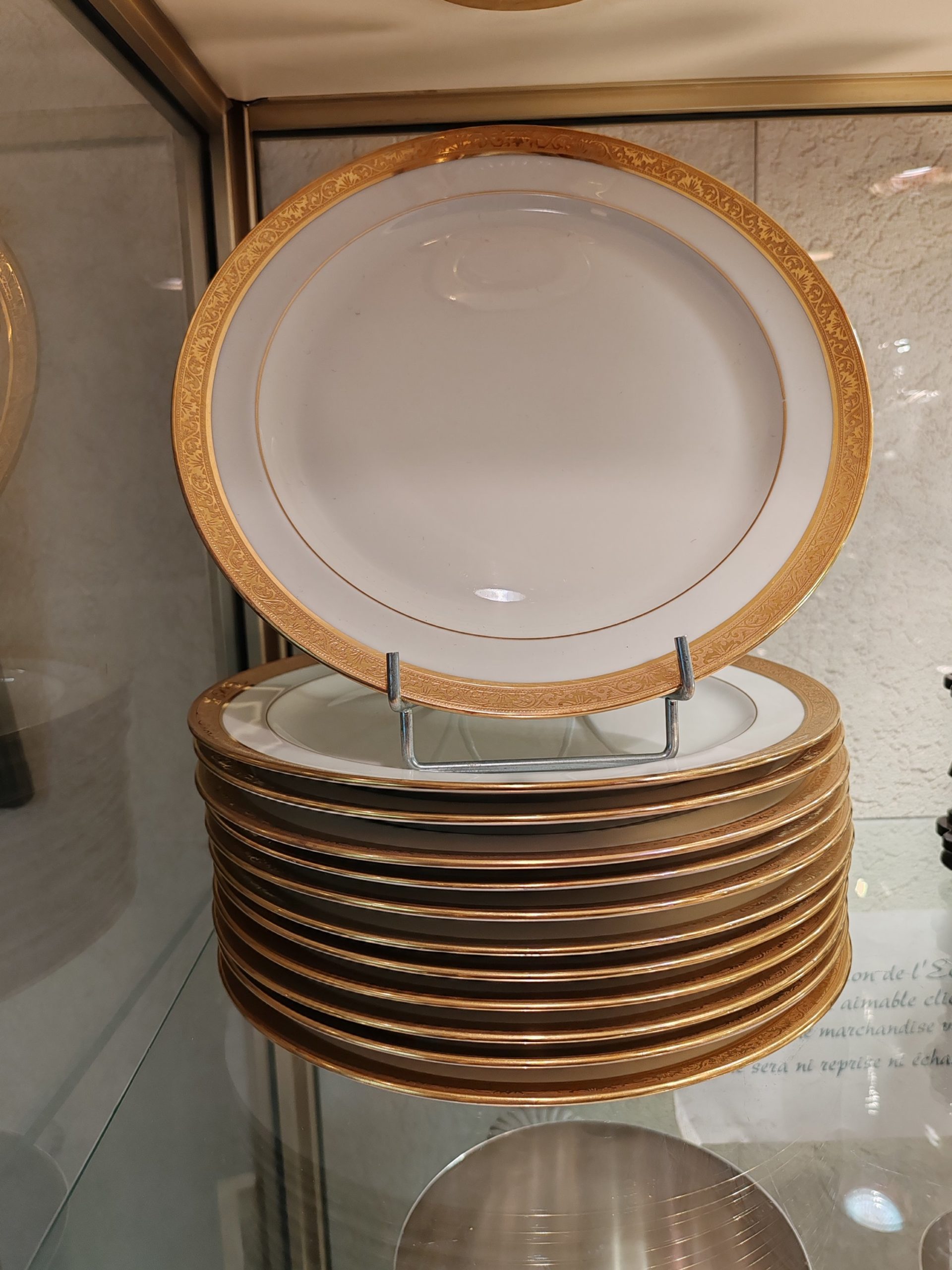 Accueil / Objets vendus / 12 Assiettes en Porcelaine de Limoges Raynaud & Cie Double dorure polie à l’agate