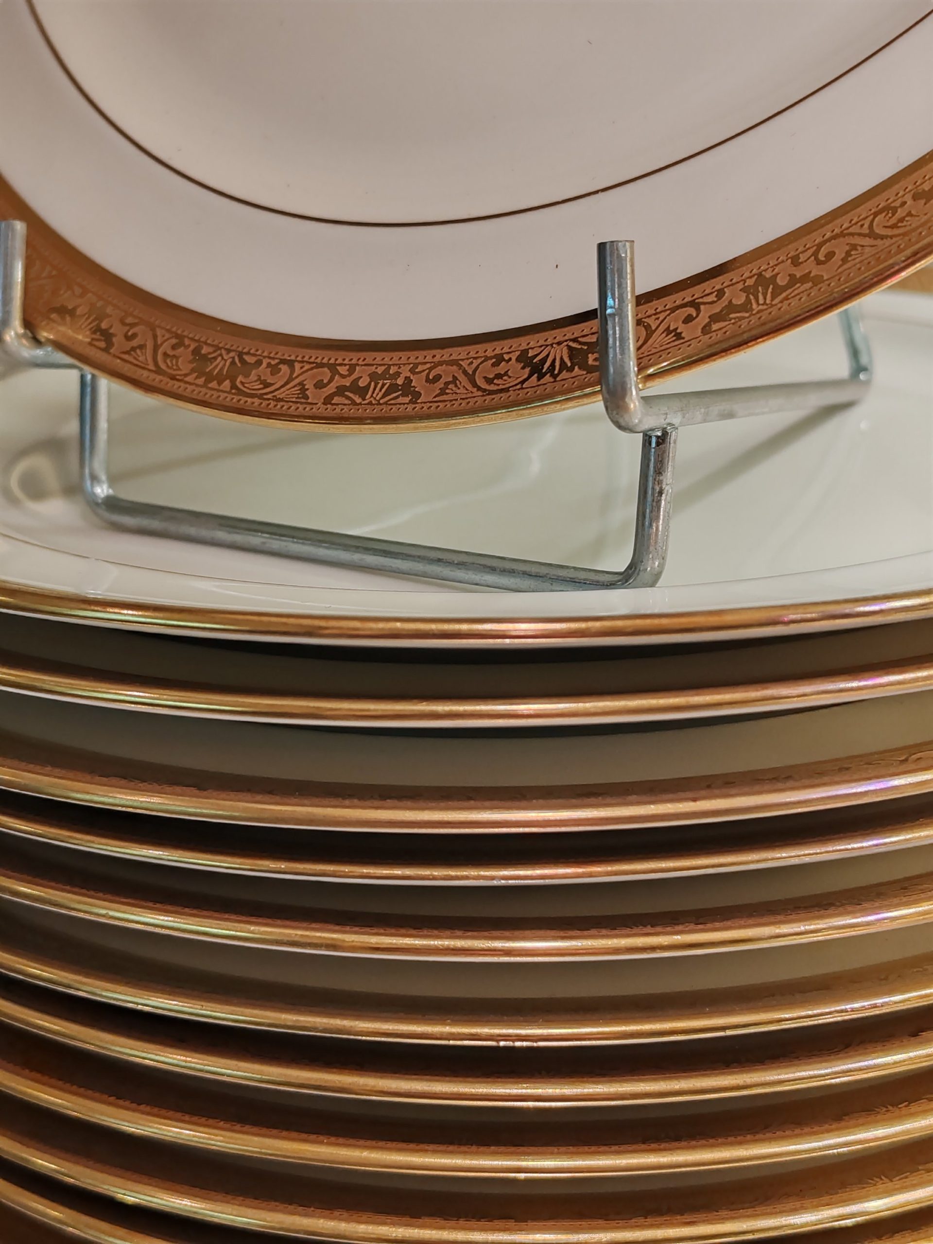 12 Assiettes en Porcelaine de Limoges Raynaud & Cie Double dorure polie à l’agate