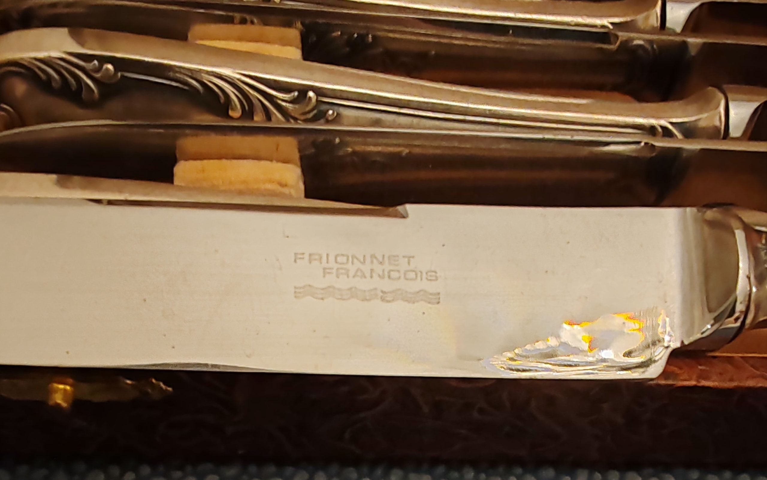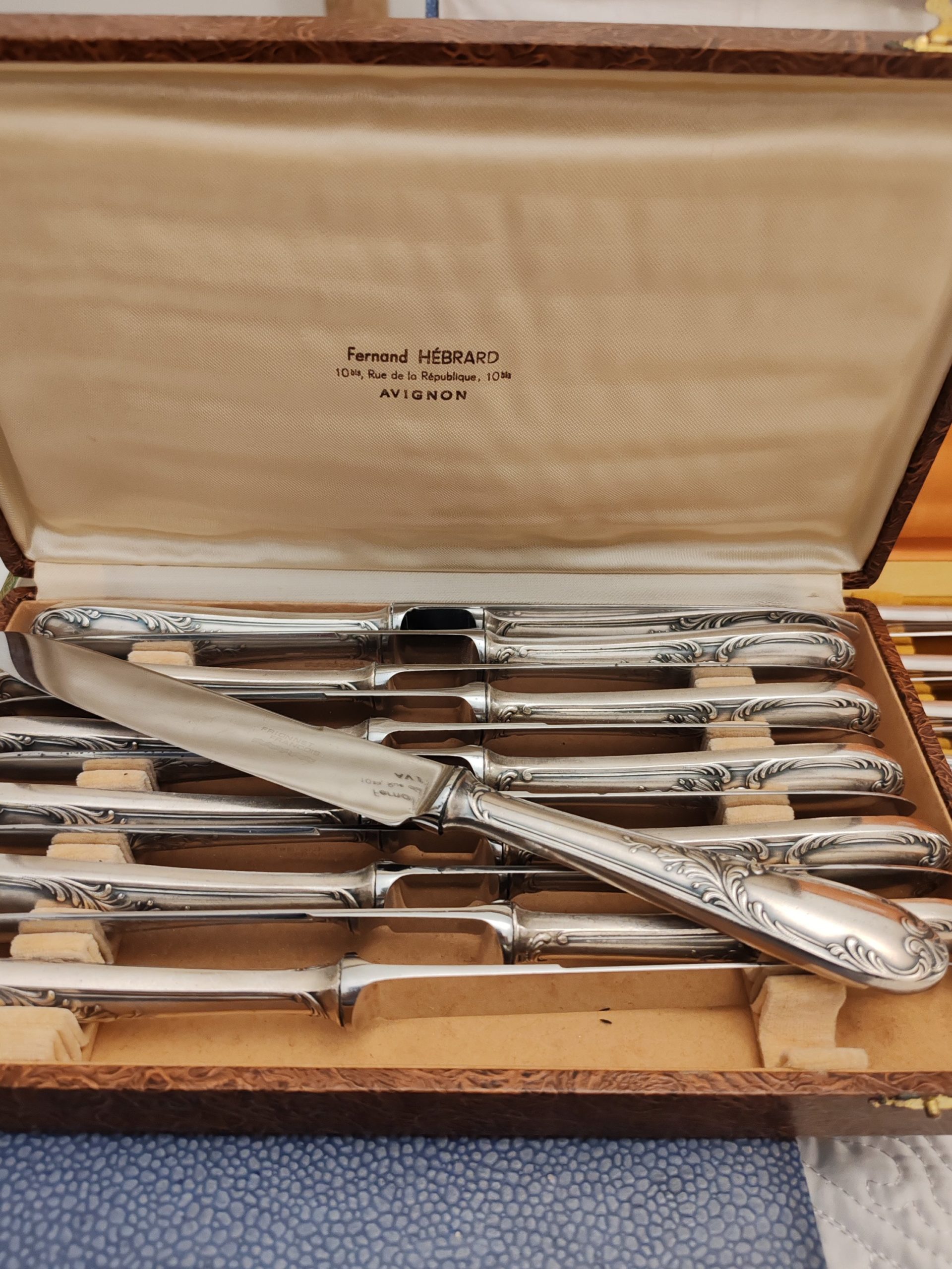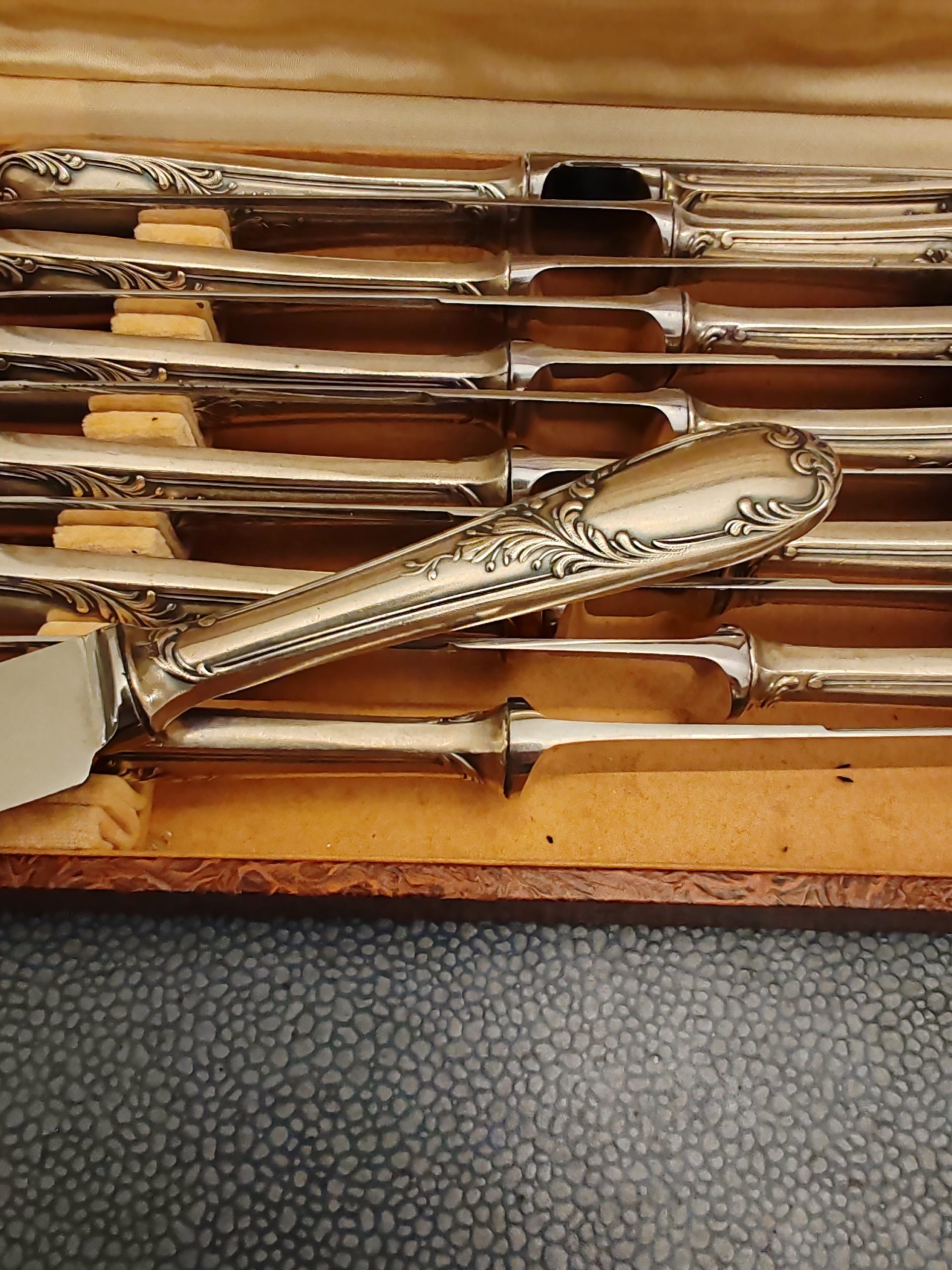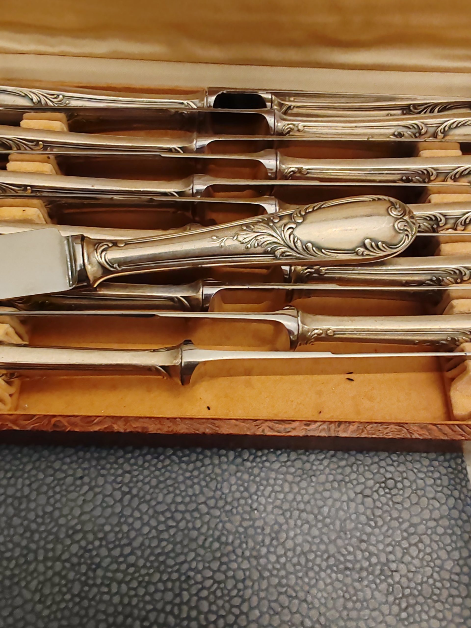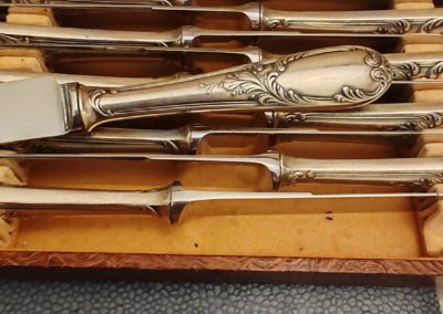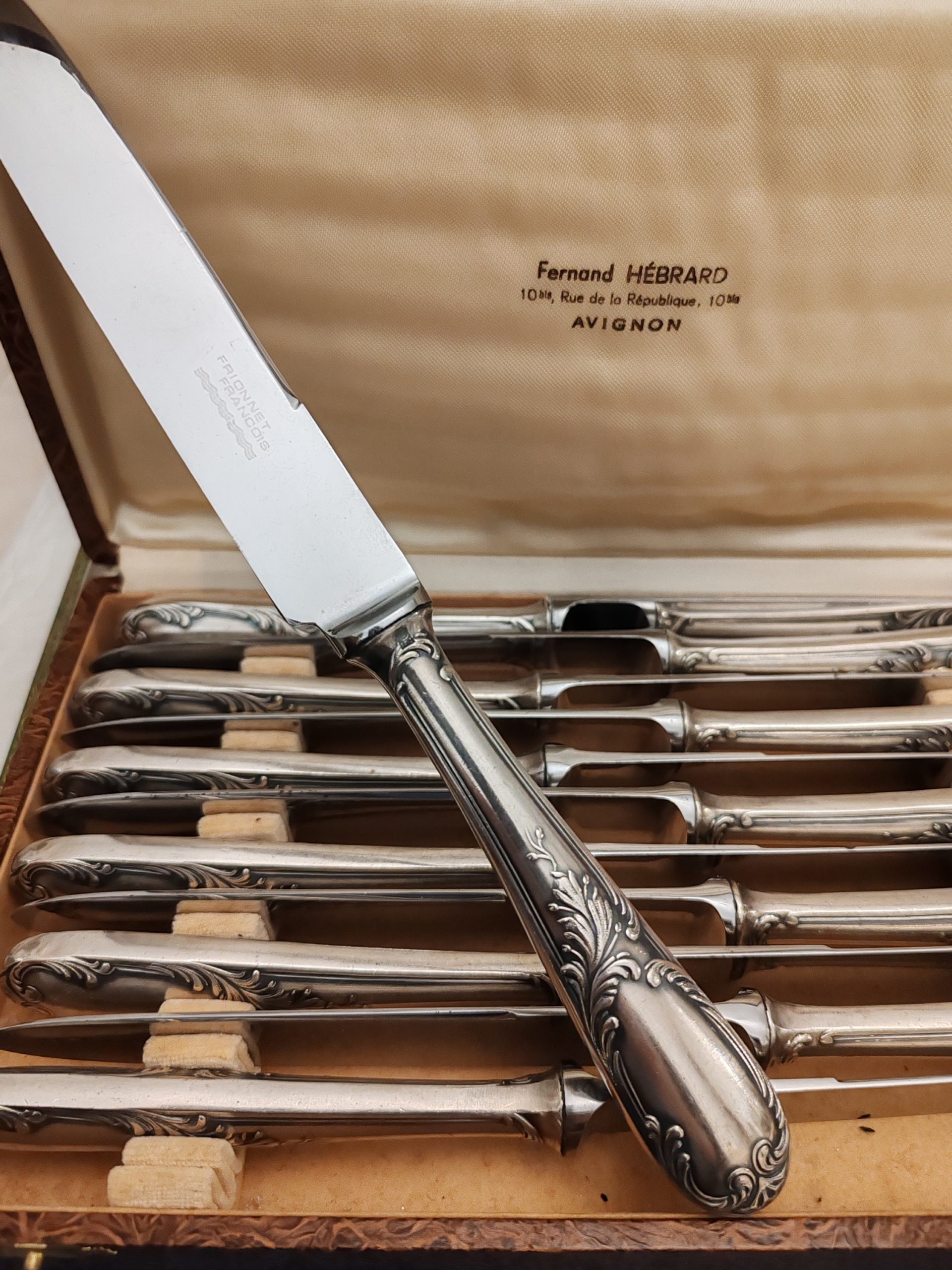 12 Couteaux en Métal Argenté Modèle Rocaille Maison Frionnet François début XXÈME Dans leur Écrin,