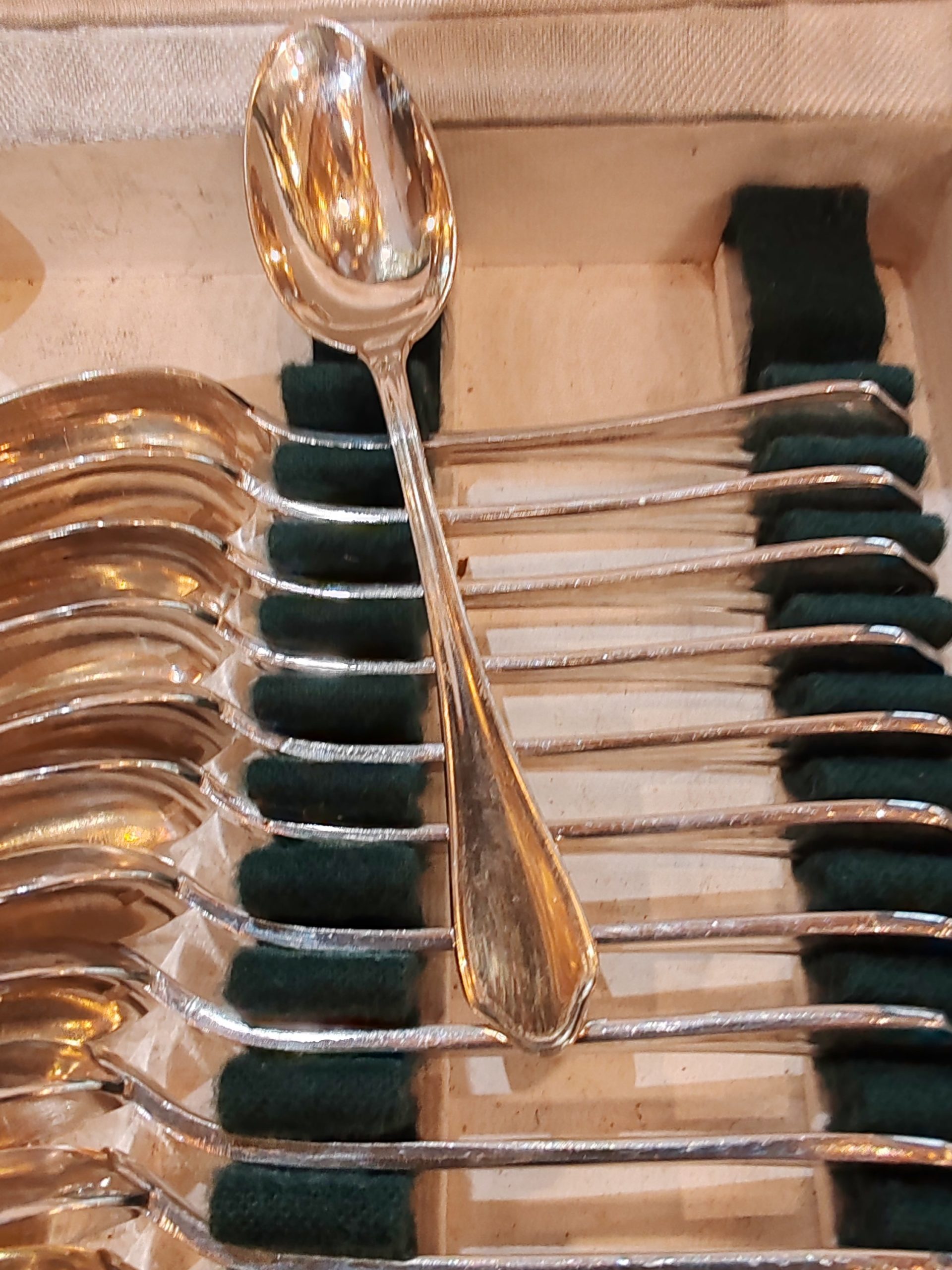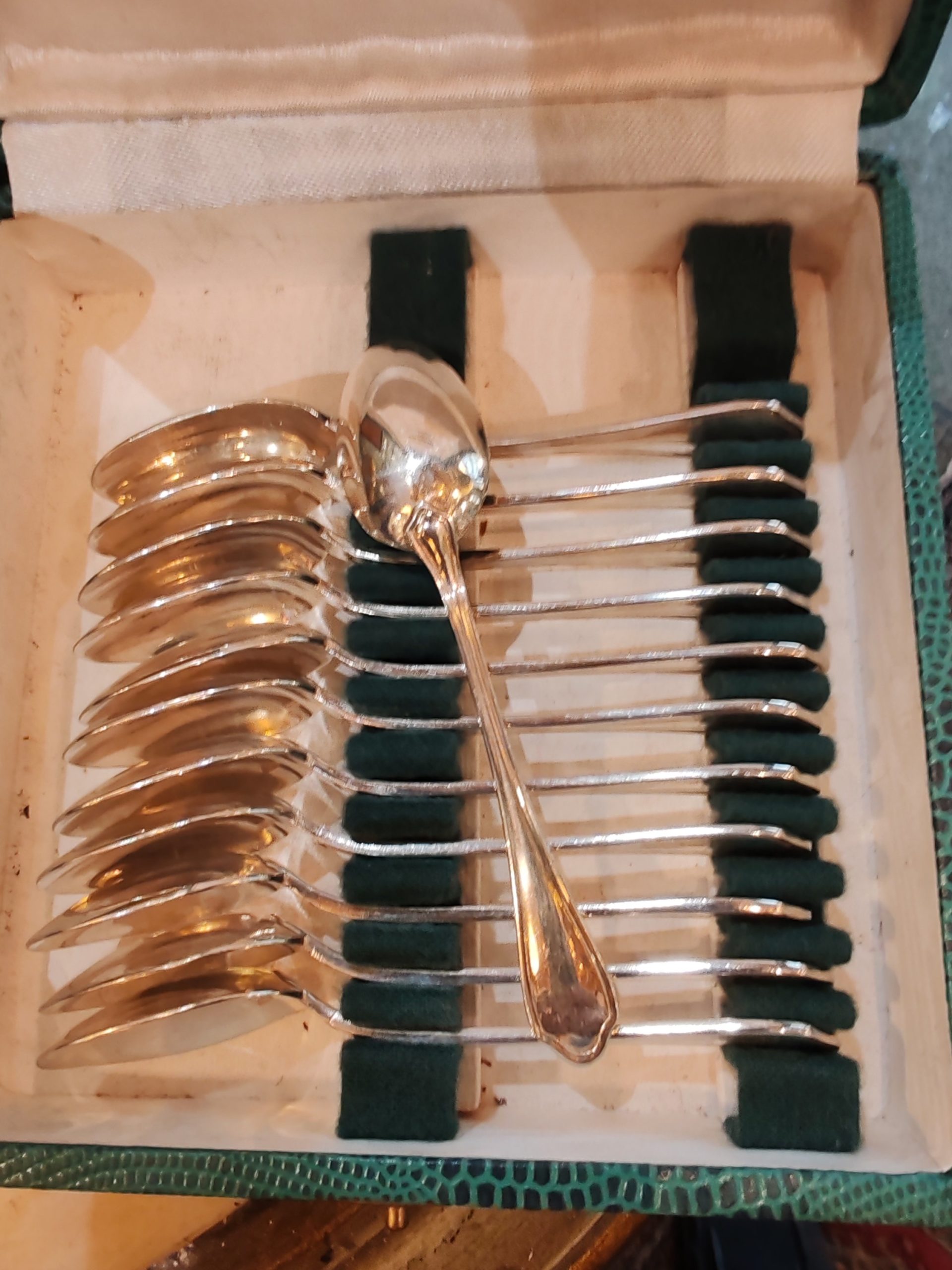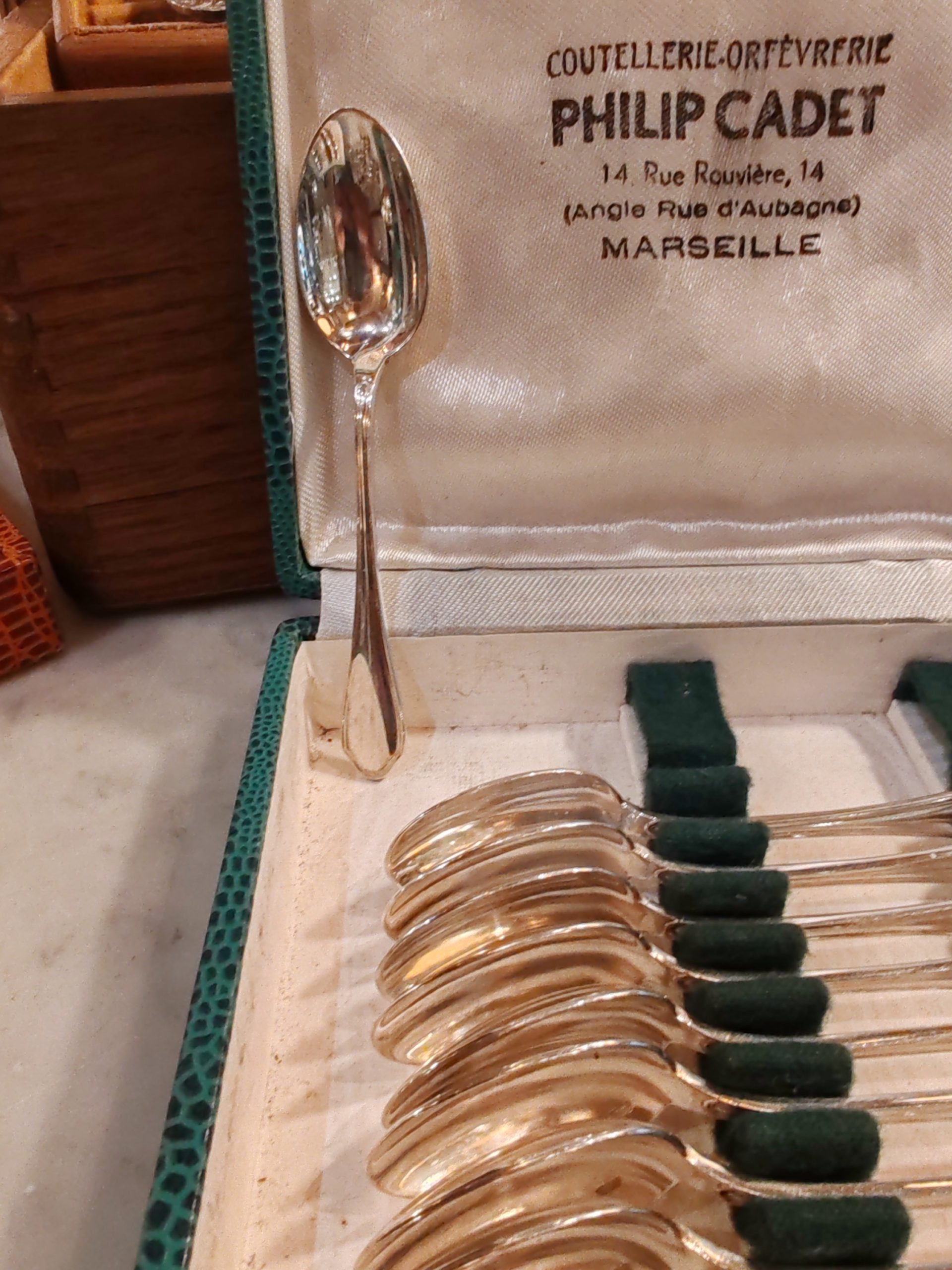 12 Cuillères à Café en Métal Argenté dans leur Écrin.