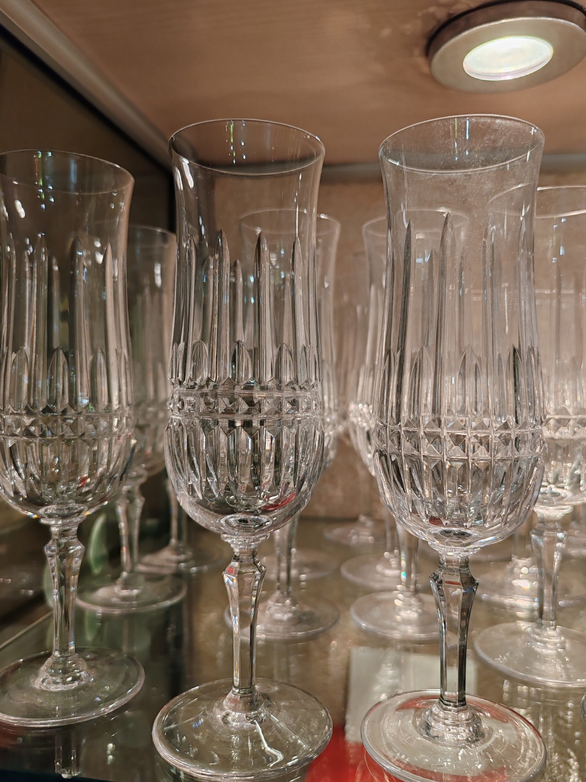 Série de 12 Verres en Cristal Taillé signée Sèvres Modèle Savannah, Années 80/90. Verre soufflé.