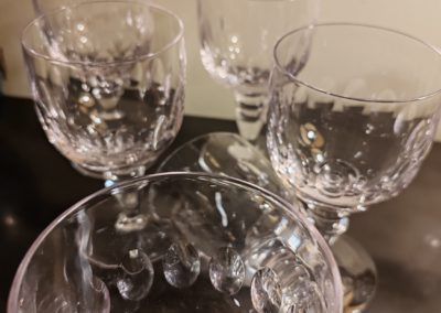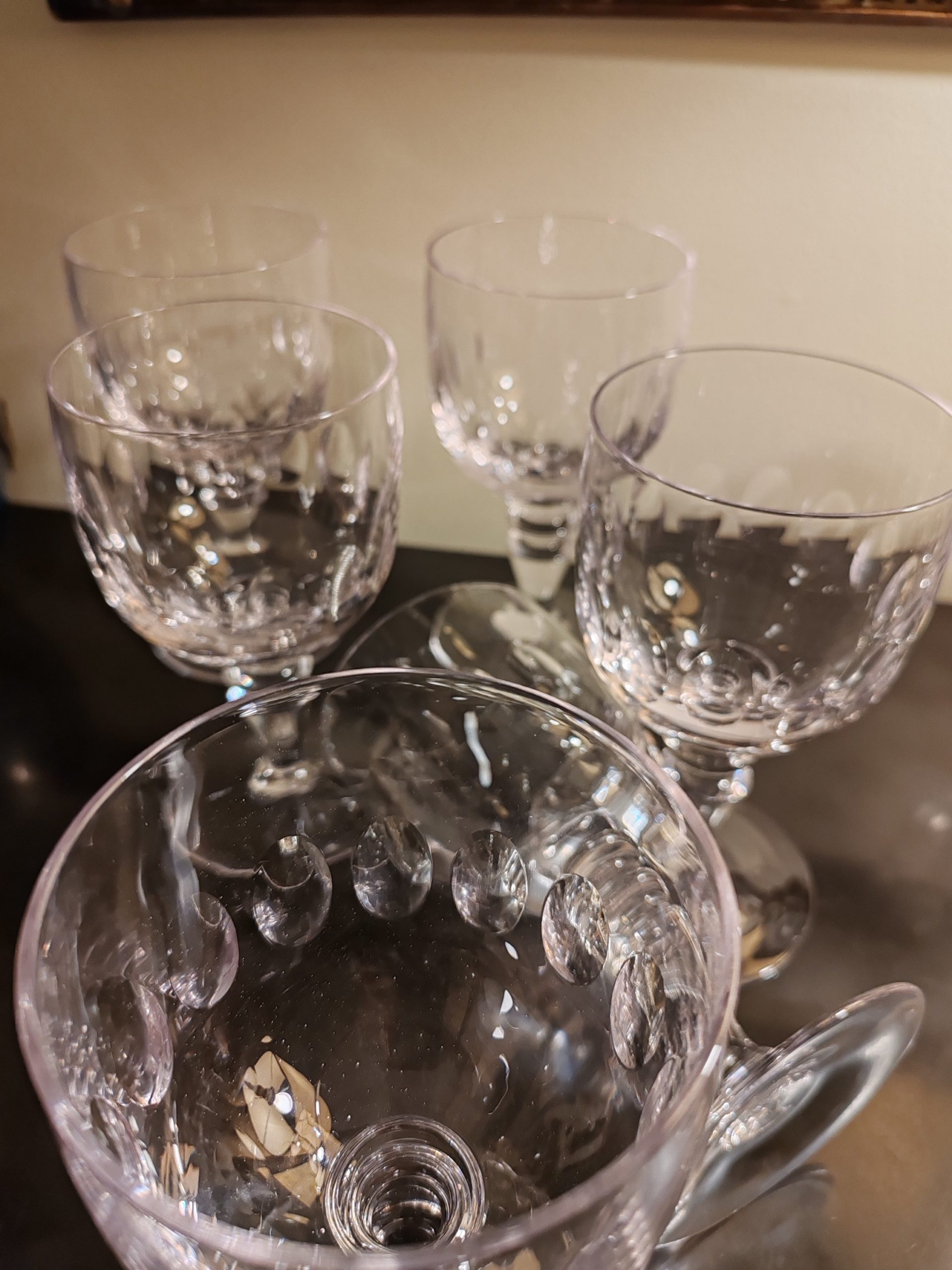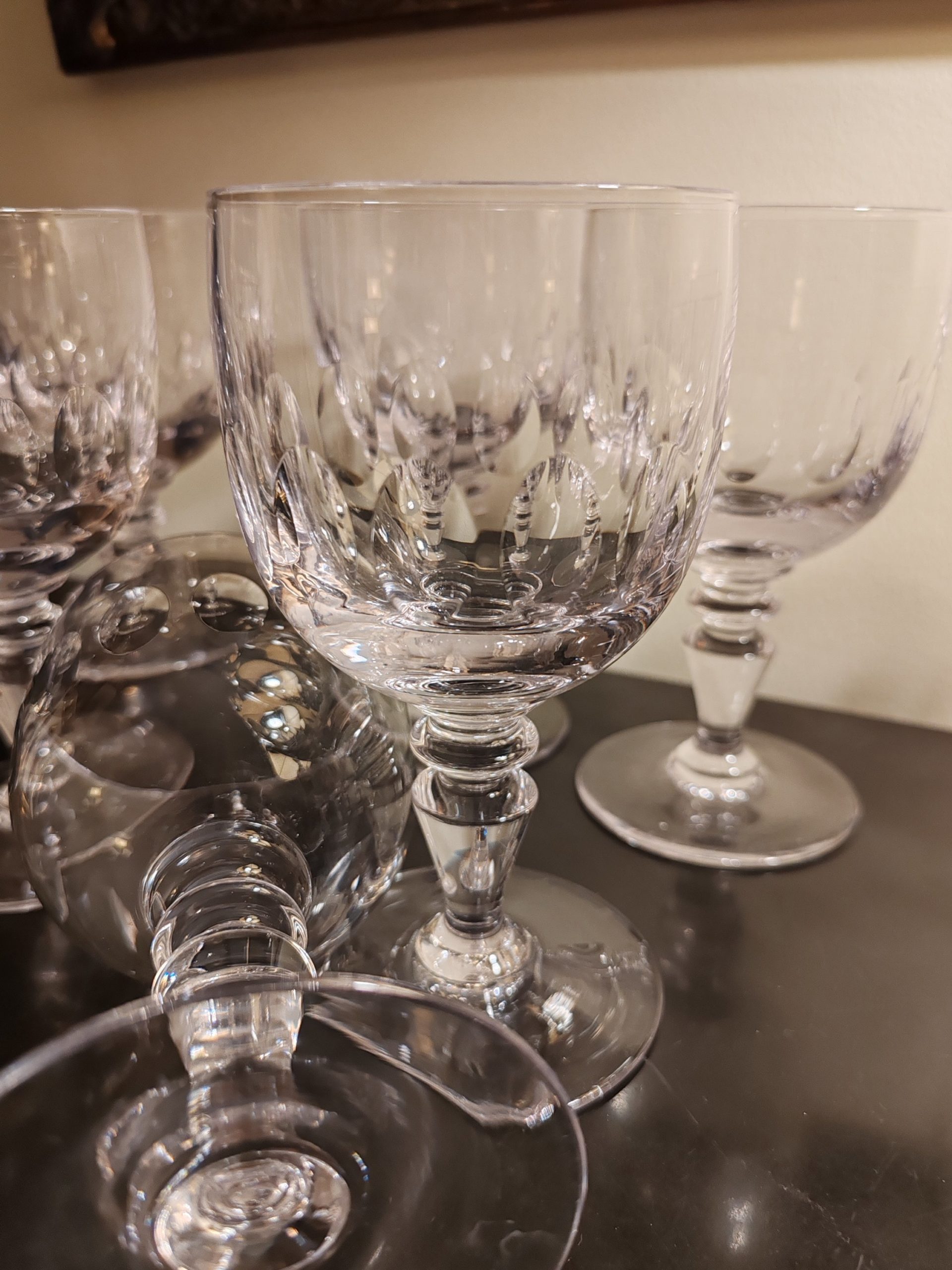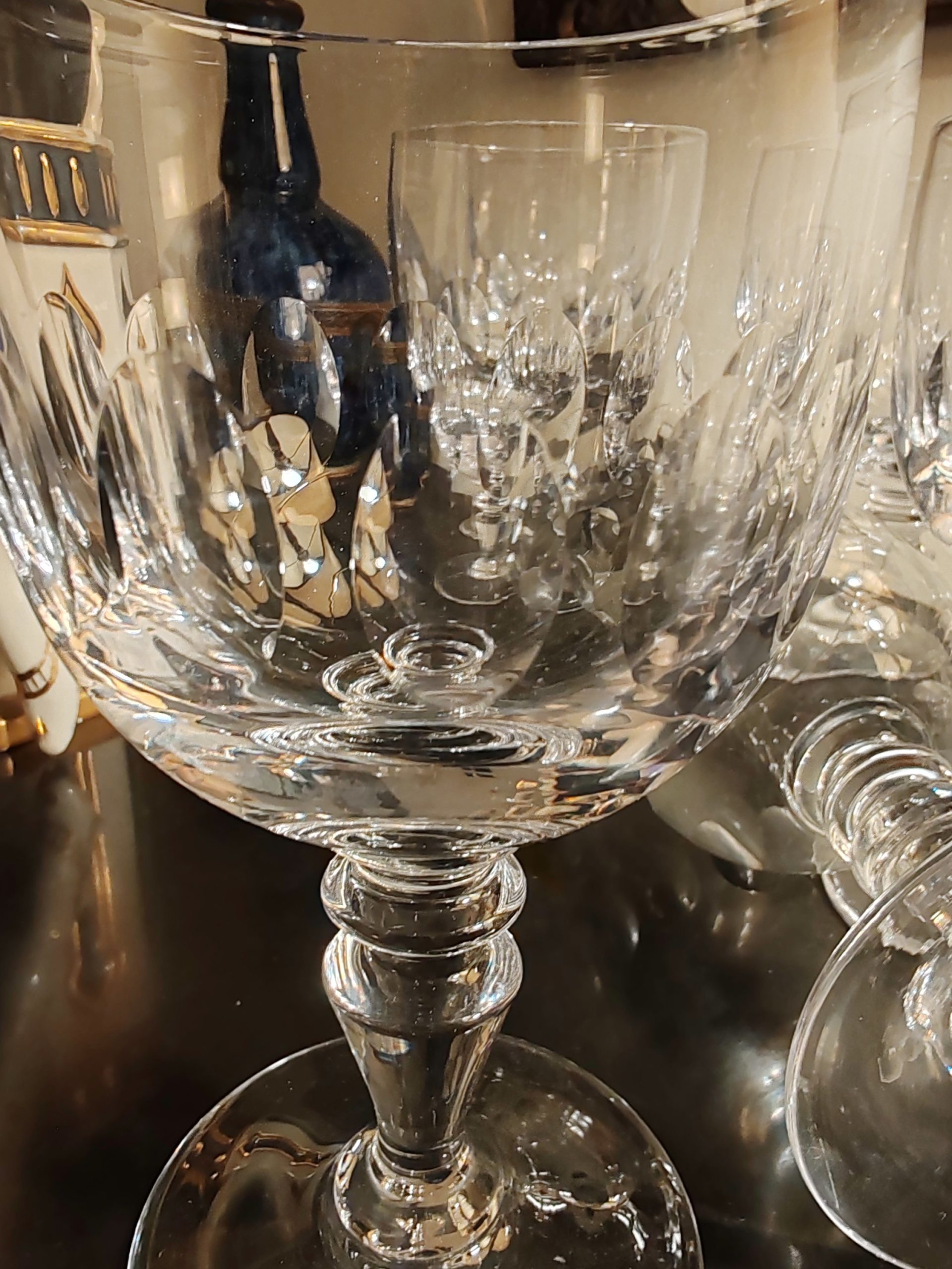 8 Verres en Cristal de BACCARAT forme ballon, jambe prisme, taille côtes plates.