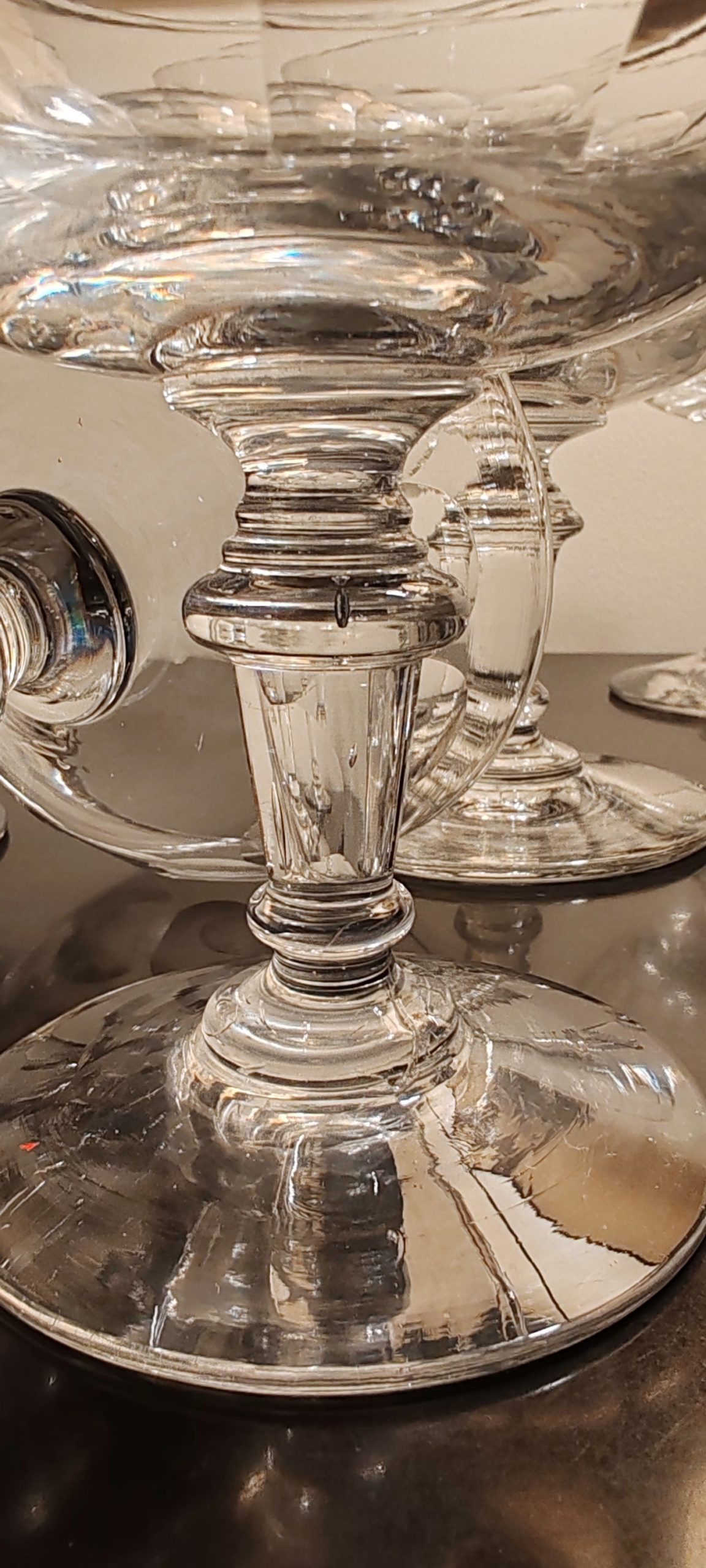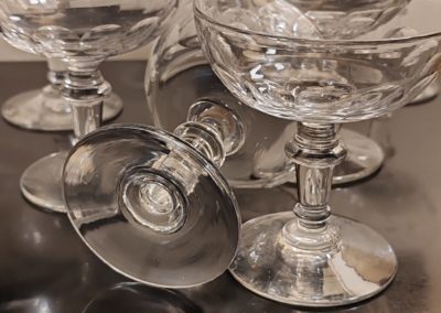Verres soufflés et taillés, ils sont en excellent état avec une belle brillance. On ne relève pas d’accident: aucune ébréchure, les bords sont bien lisses sans égrenures. Ils seront très élégants sur une jolie table.