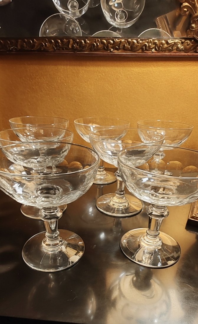 7 Coupes à Champagne Cristallerie de Portieux Modèle Mirabeau Fin XIXÈME début XXÈME
