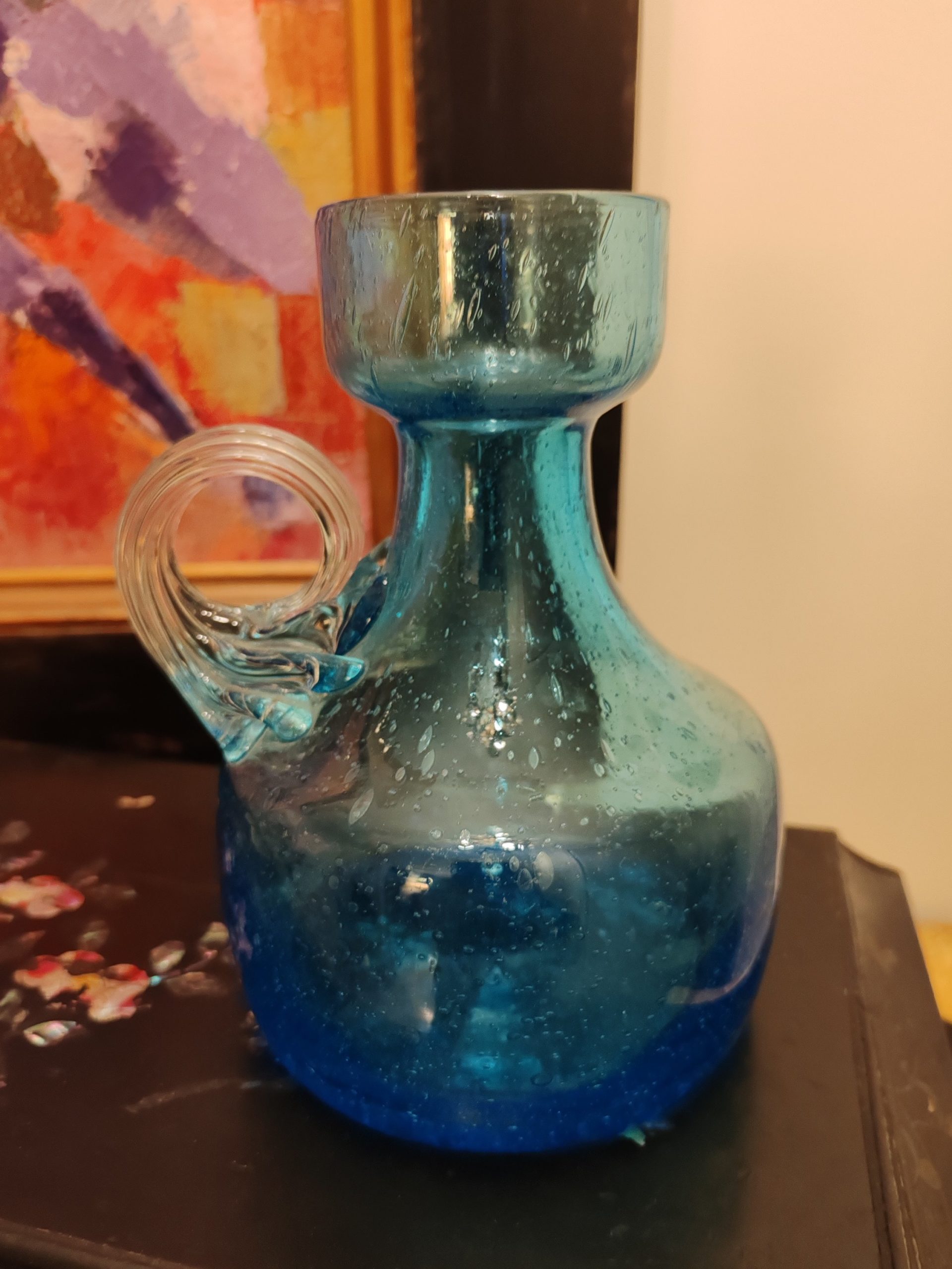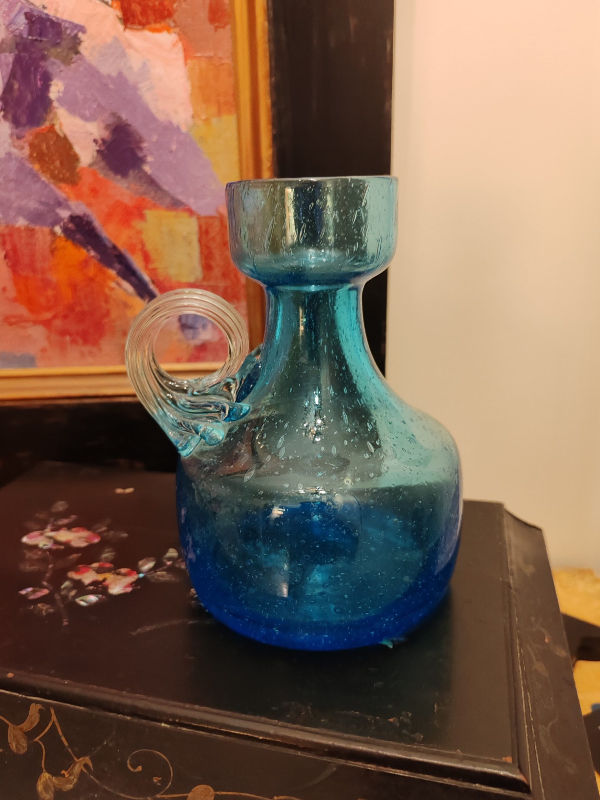 Broc Verrerie de l’île de BENDOR soufflé bouche et bulle. Hauteur 17 cm Années 50/60