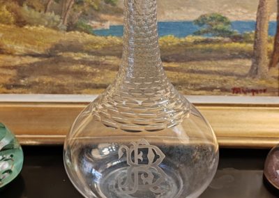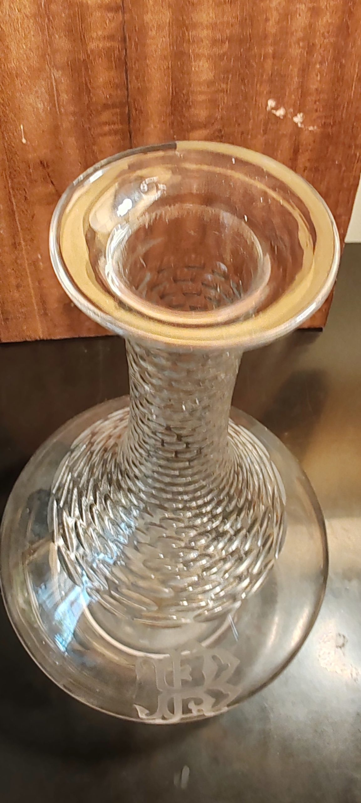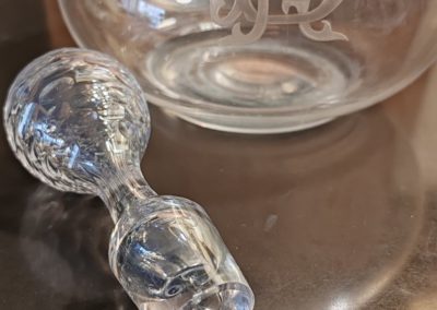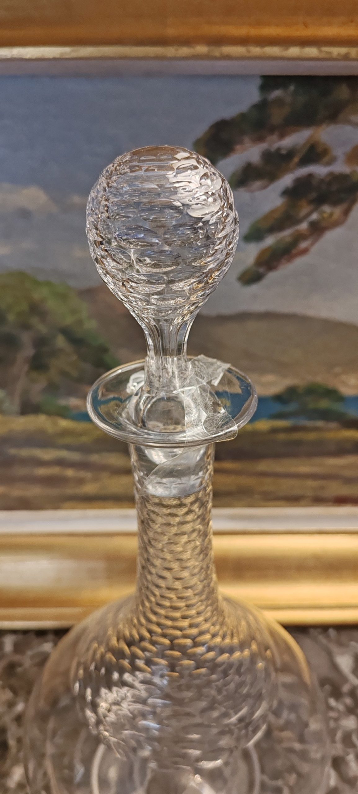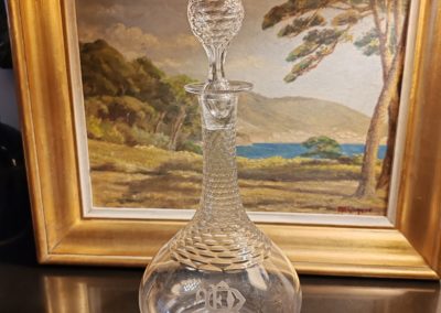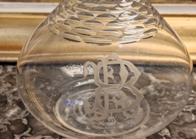 Carafe XIXÈME Val St Lambert en Cristal. Celle-ci est Taillée le long du col et sur le bouchon ornée d’un monogramme. Hauteur 20cm