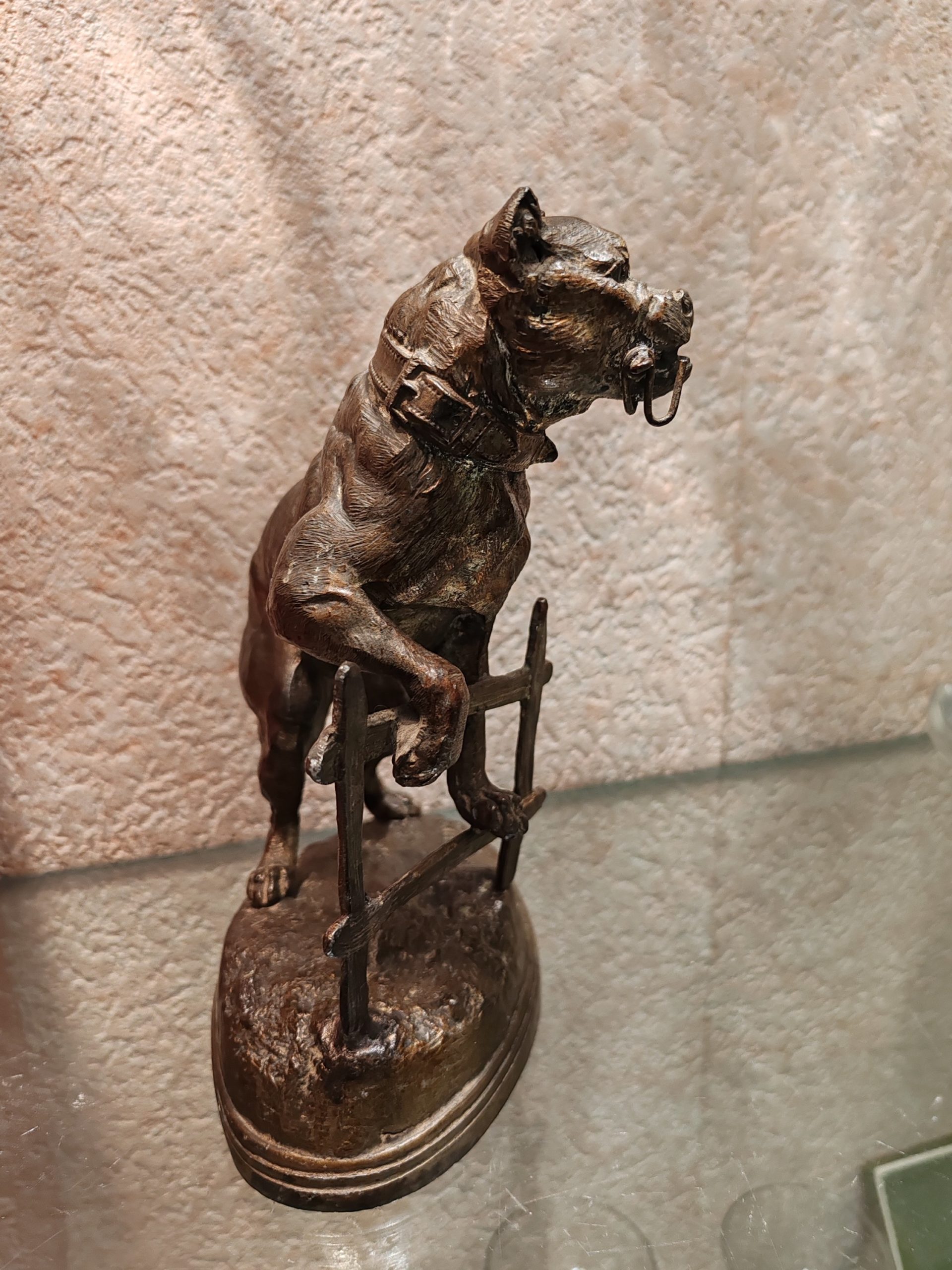 Épreuve en régule à patine bronze (brillante) d’après Charles Valton représentant un chien de type berger d’Asie centrale, faisant office de porte montre à gousset.
