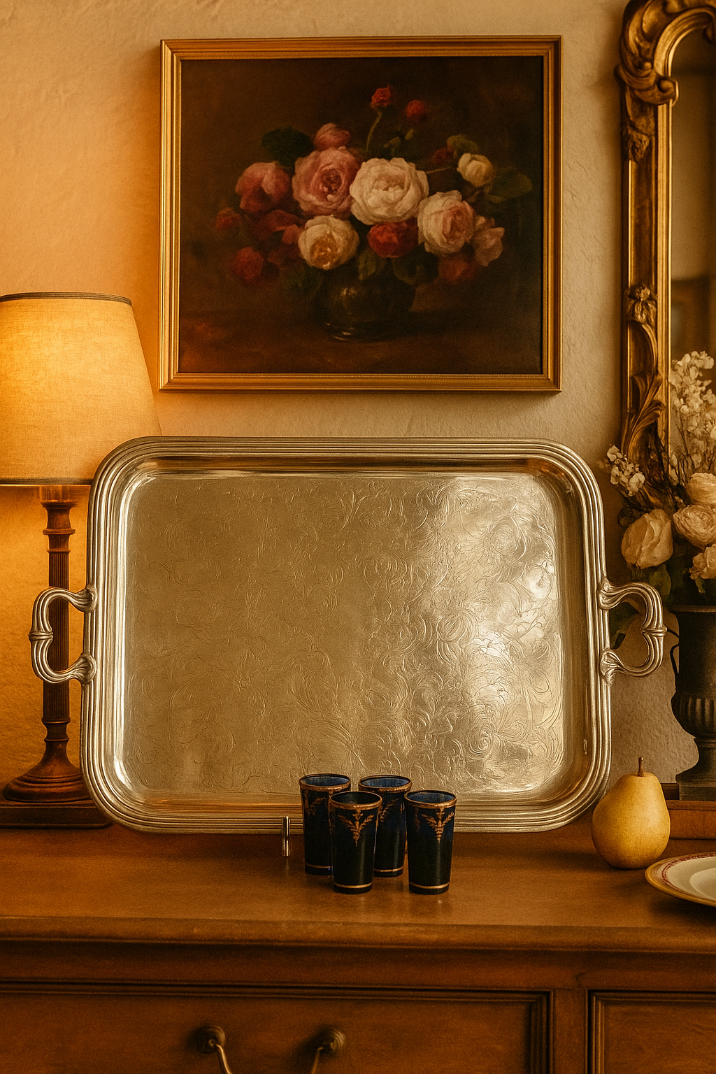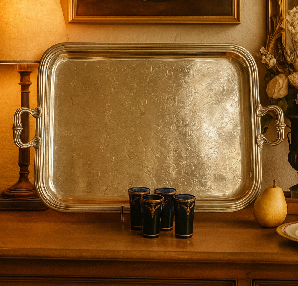 CHRISTOFLE Grand Plateau de Service en Métal Argenté 70 cm x 47 cm