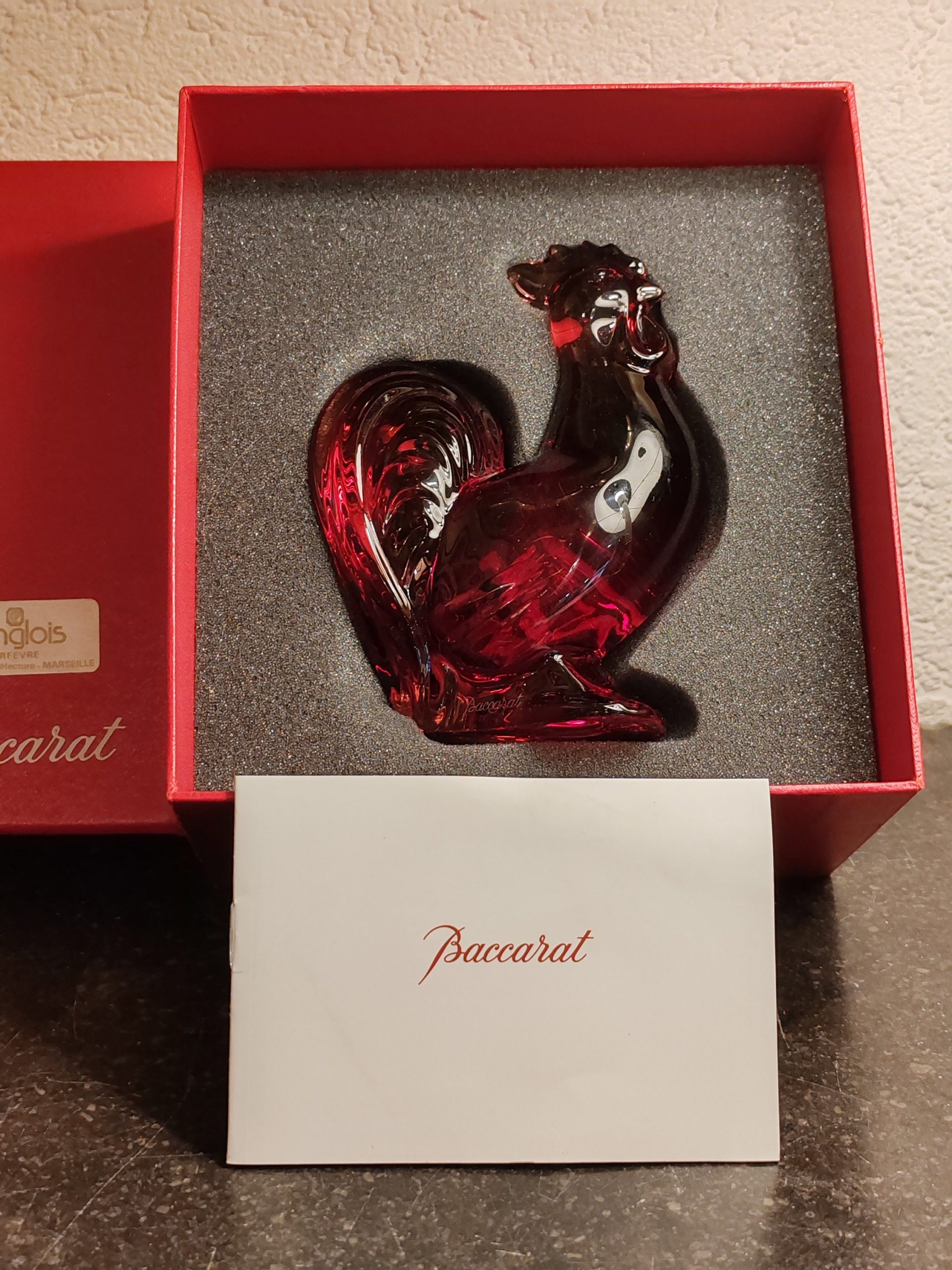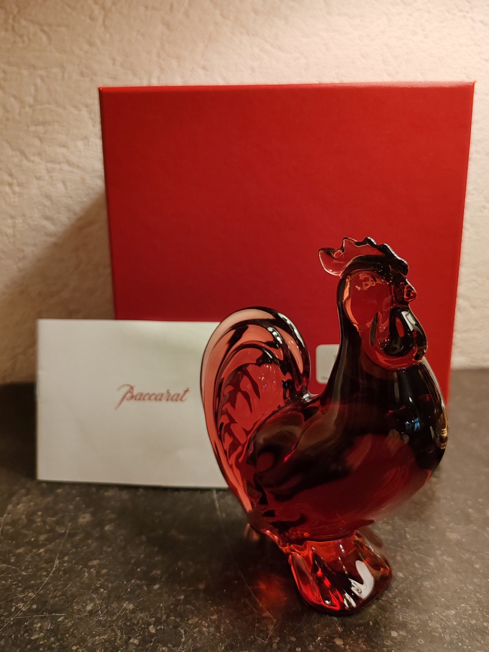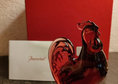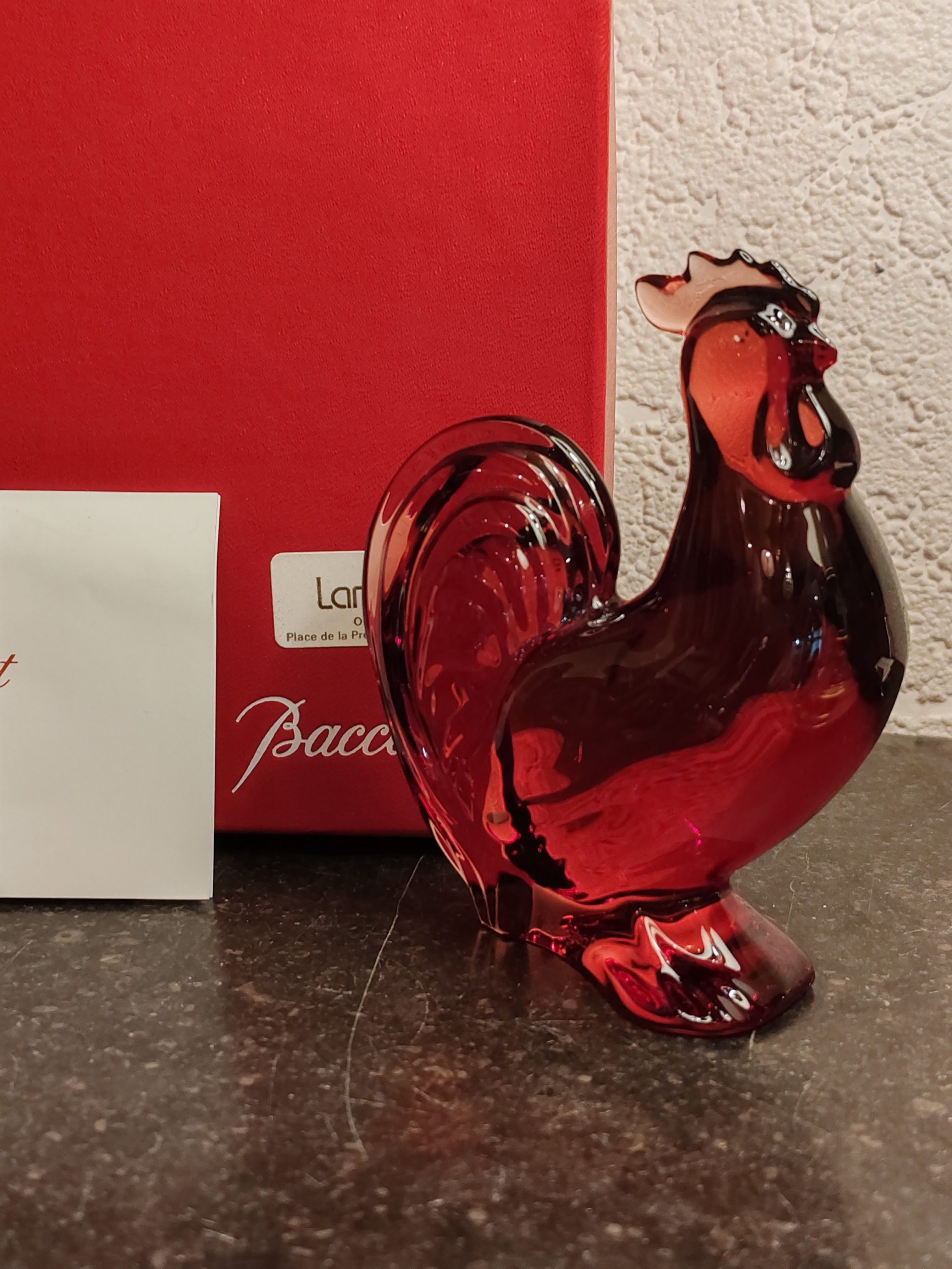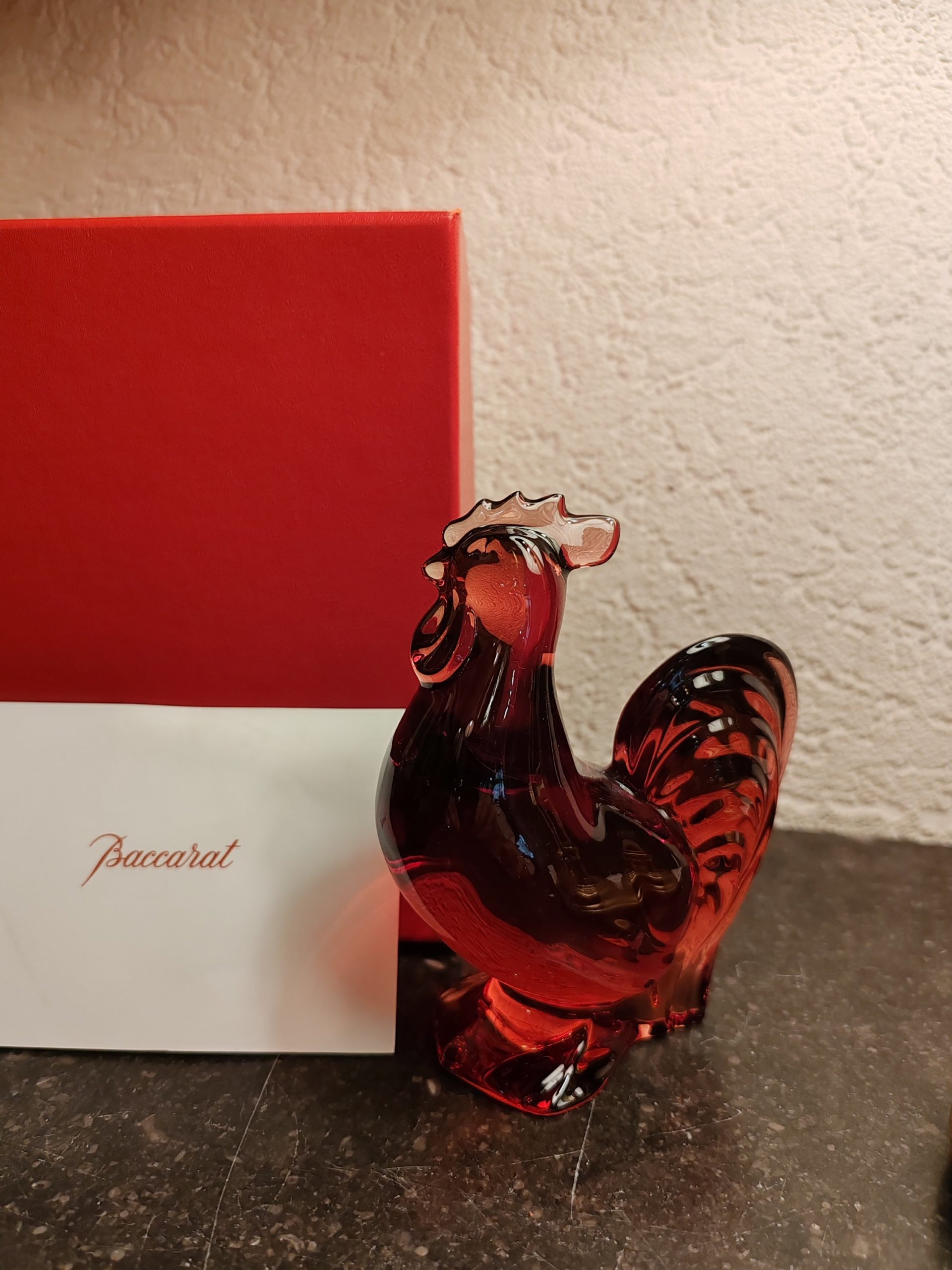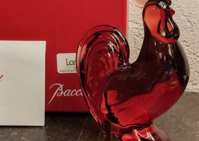 Coq en Cristal de BACCARAT Couleur Rubis dans sa Boîte.