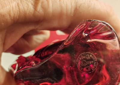 Coq en Cristal de BACCARAT couleur Rouge Rubis estampillé de la marque sur le dessous.