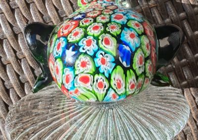 Le verrier anglais Apsley Pellatt dans son livre Curiosities of Glass Making, a été le premier à utiliser le terme « millefiori », qui est apparu dans l’Oxford English Dictionary en 1849 ; avant cela, les perles étaient appelées «perles de mosaïque». Bien que l’utilisation de cette technique soit antérieure au terme «millefiori», elle est aujourd’hui le plus souvent associée à la verrerie vénitienne.