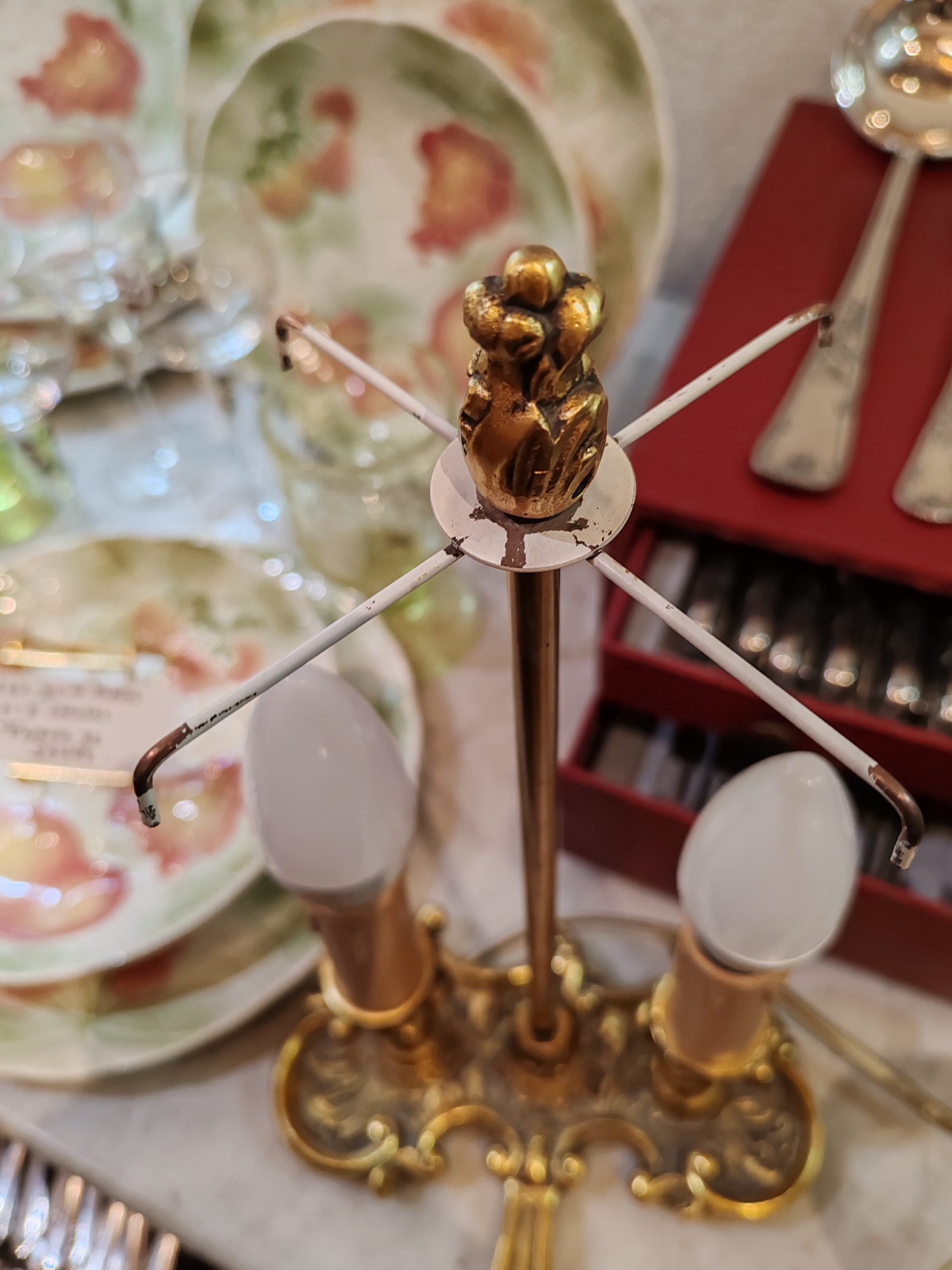 Lampe bouillotte en Bronze doré style LOUIS XV dite Rocaille avec poignée, appelée lampe tremblante. Électricité refaite à neuf.