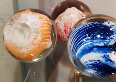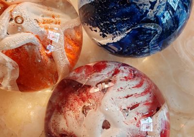 Lot de 3 Sulfures en Cristal Bleu, orange, rouge associés à du blanc en forme de vague Diamètre 6, 5 cm / 7 cm