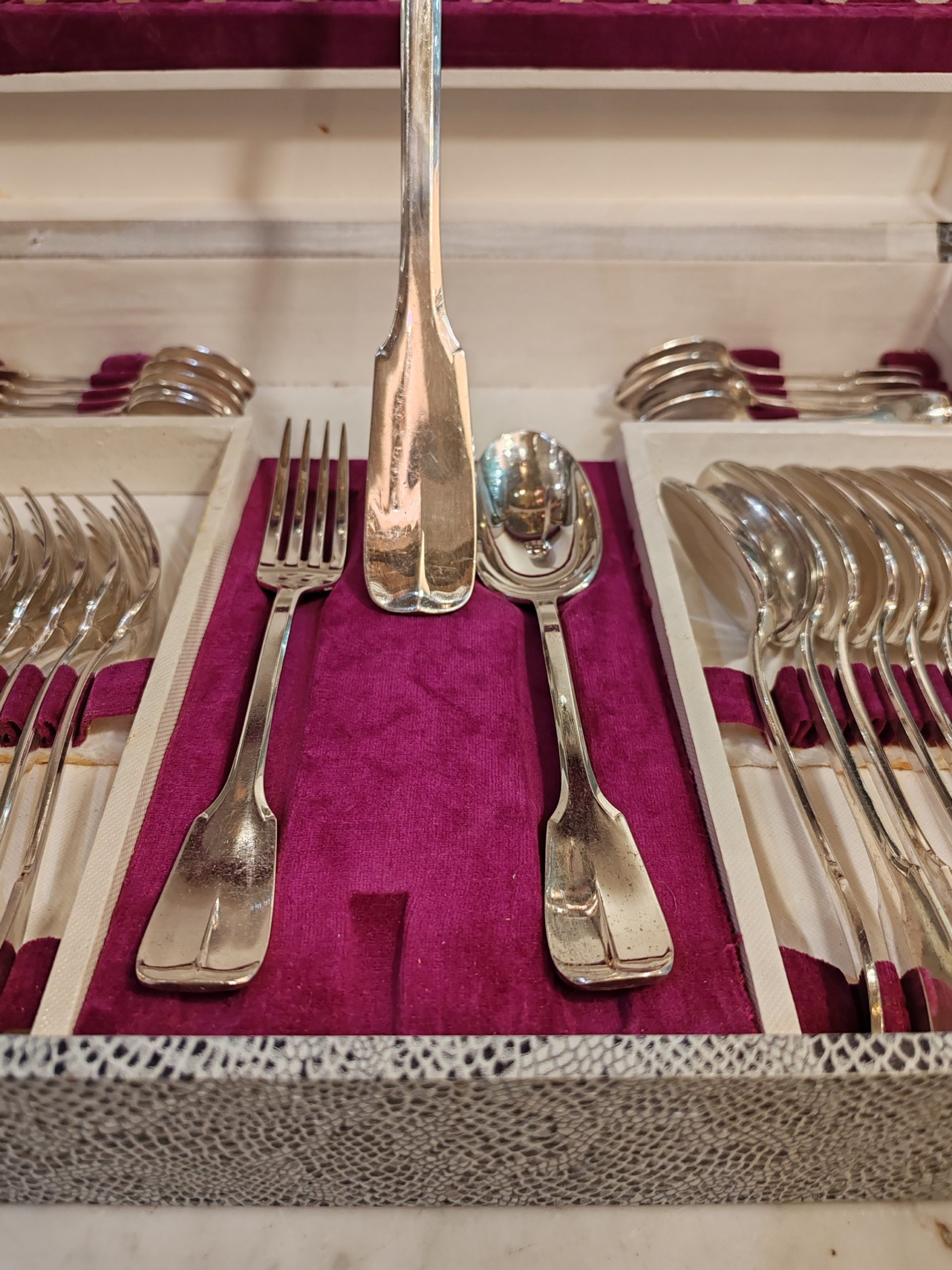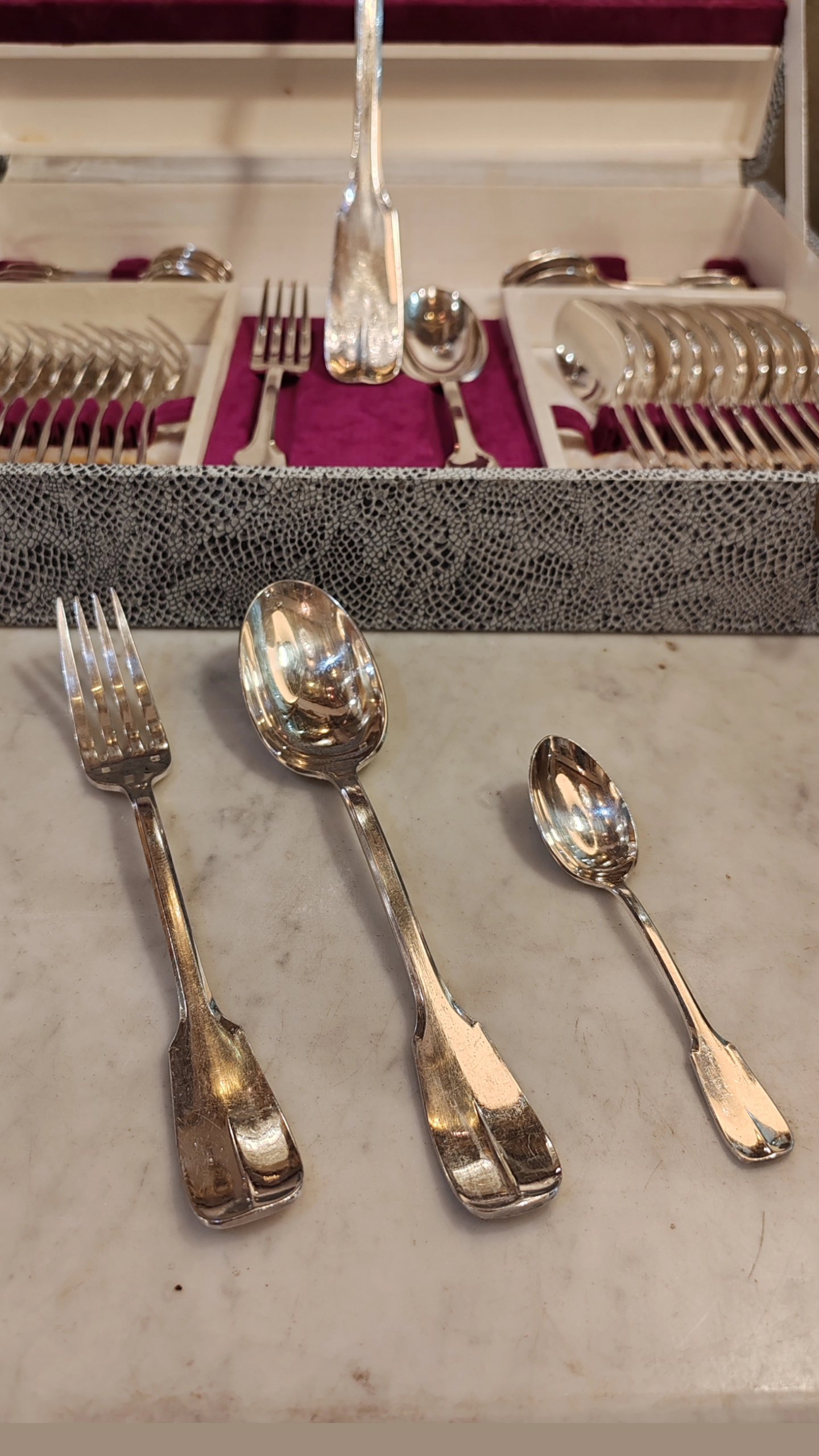 Ménagère en Métal Argenté Modèle Violonné en forme de (violon) dans leur écrin comportant 37 pièces.