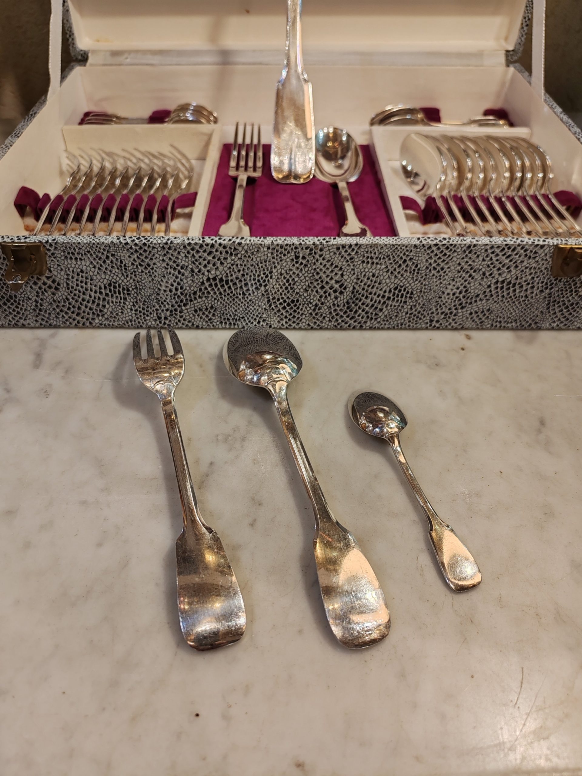 Accueil / Orfèvrerie / Ménagère en Métal Argenté Modèle Violonné 37 Pièces
