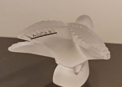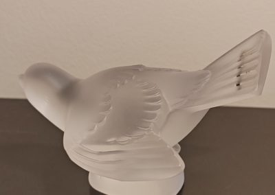 Figurine d’oiseau représentant un moineau en cristal dépoli Signé et Marqué LALIQUE . De style Art Déco, elle est ornée de cristaux gravés, ce qui en fait une pièce unique et élégante pour tout intérieur. Objet de collection, pièce intemporelle témoigne du savoir-faire et de l’art. Années 70.