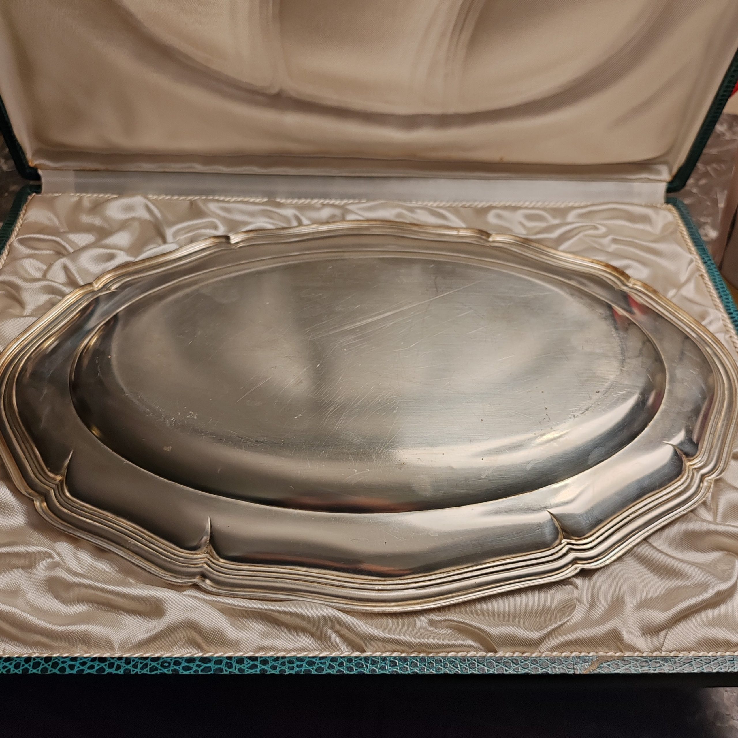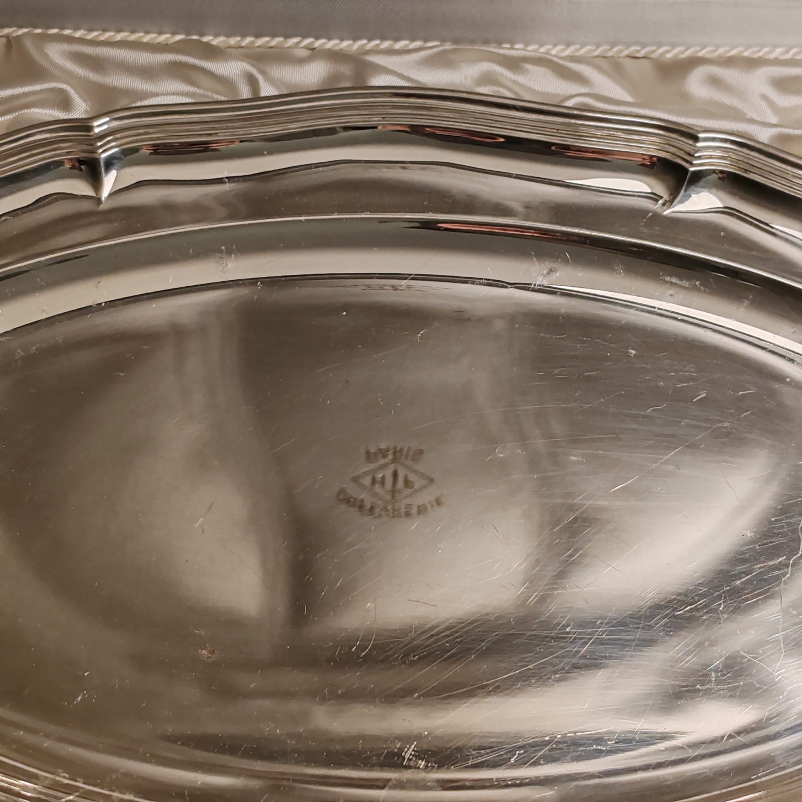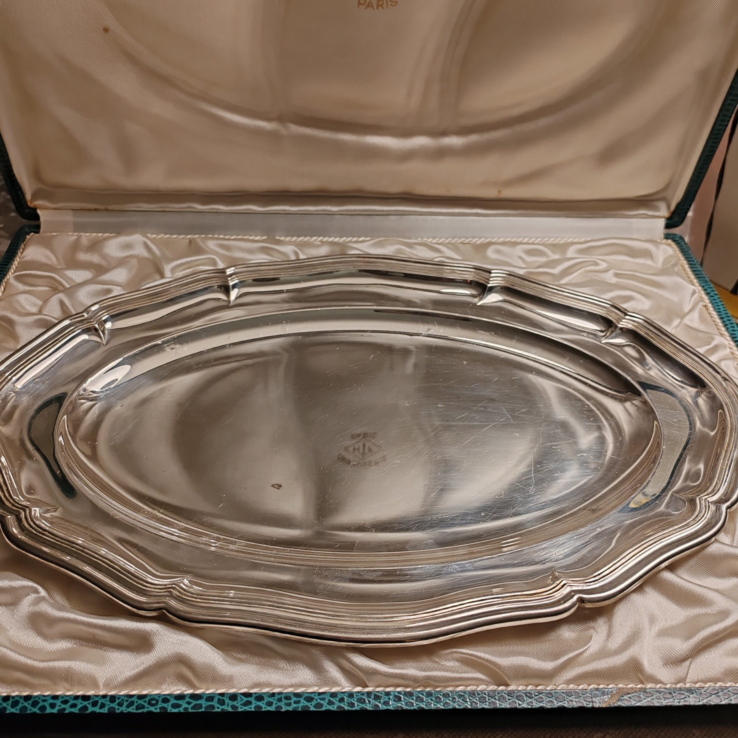 Nécessaire à Hors d’oeuvre Plateau Ovale Métal Argenté 23,5 cm x 35,5 cm 3 compartiments en verre