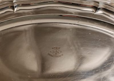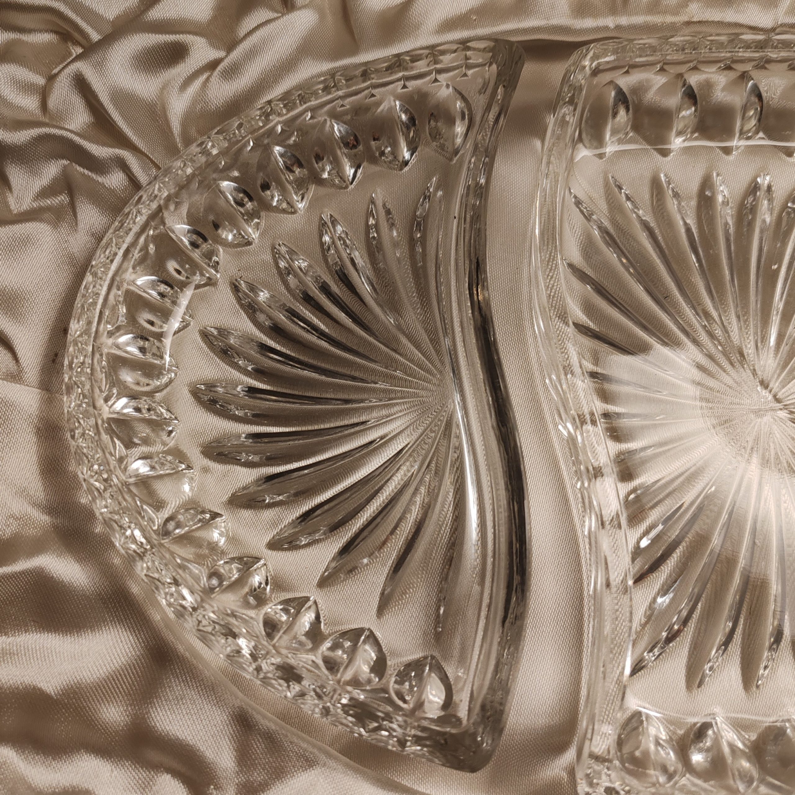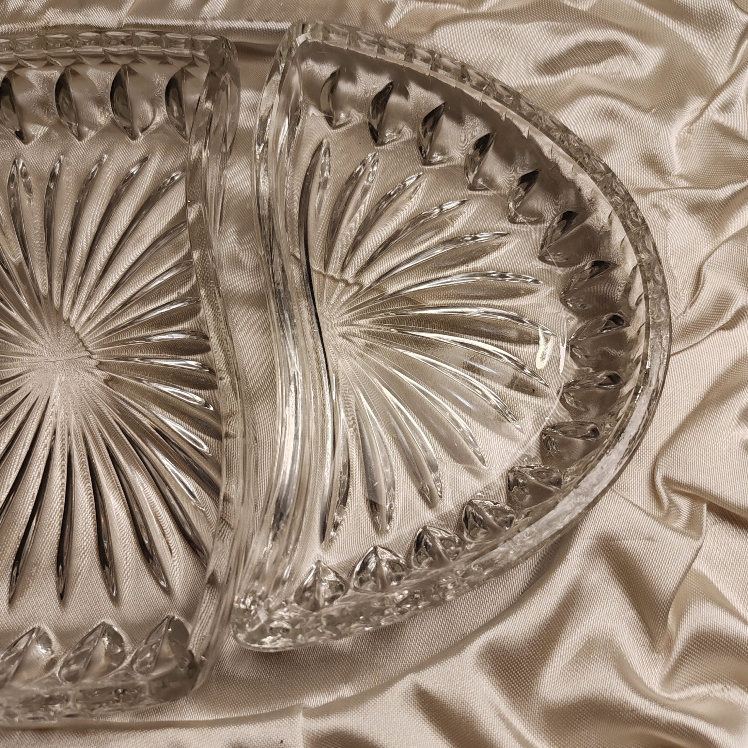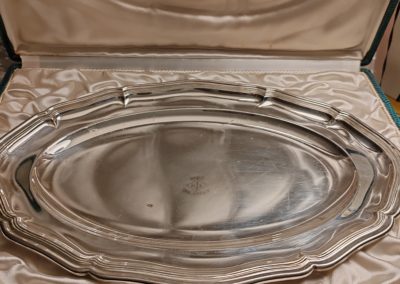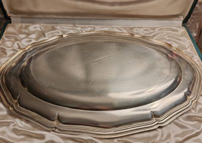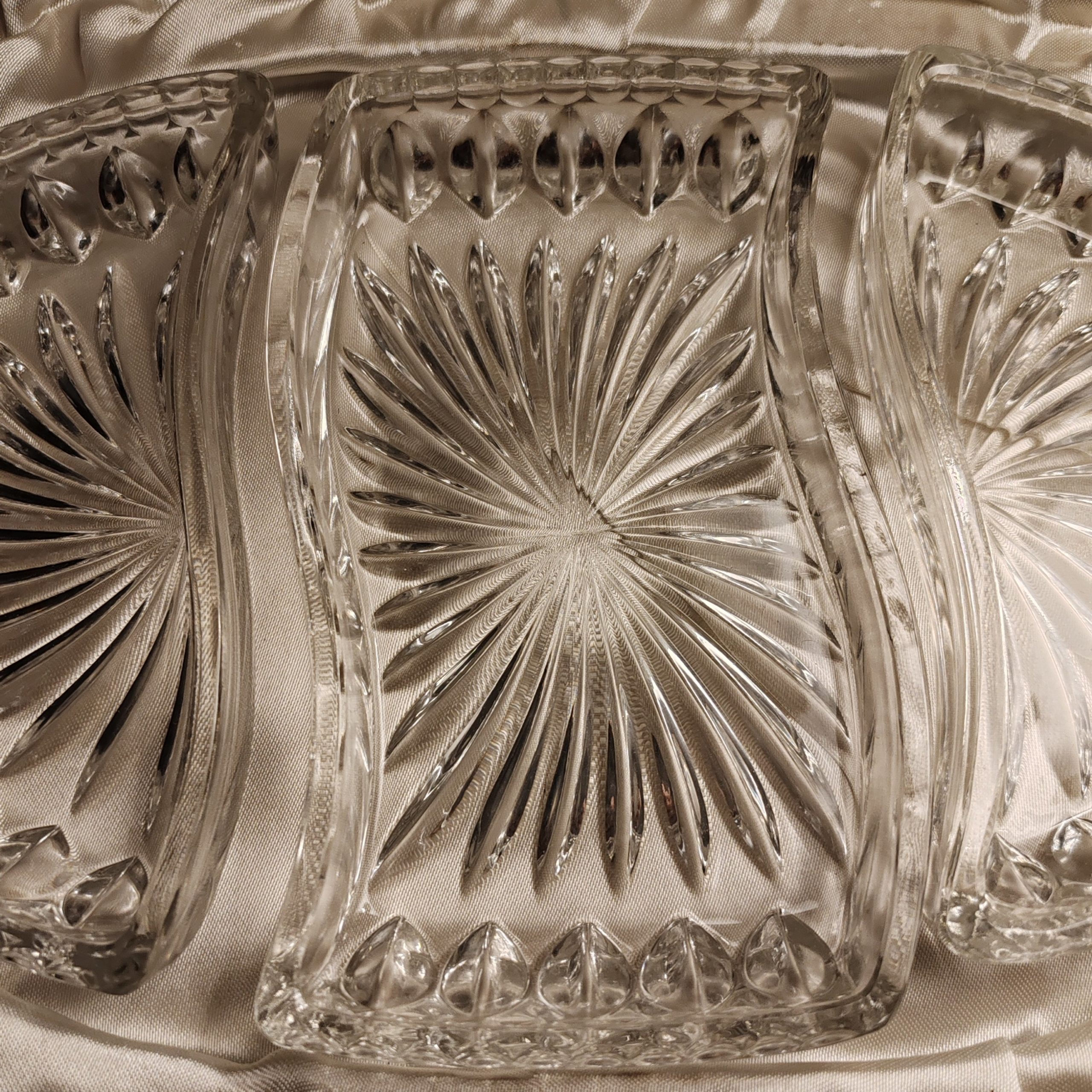 Nécessaire à Hors d’oeuvre Plateau Ovale Métal Argenté 23,5 cm x 35,5 cm 3 compartiments en verre