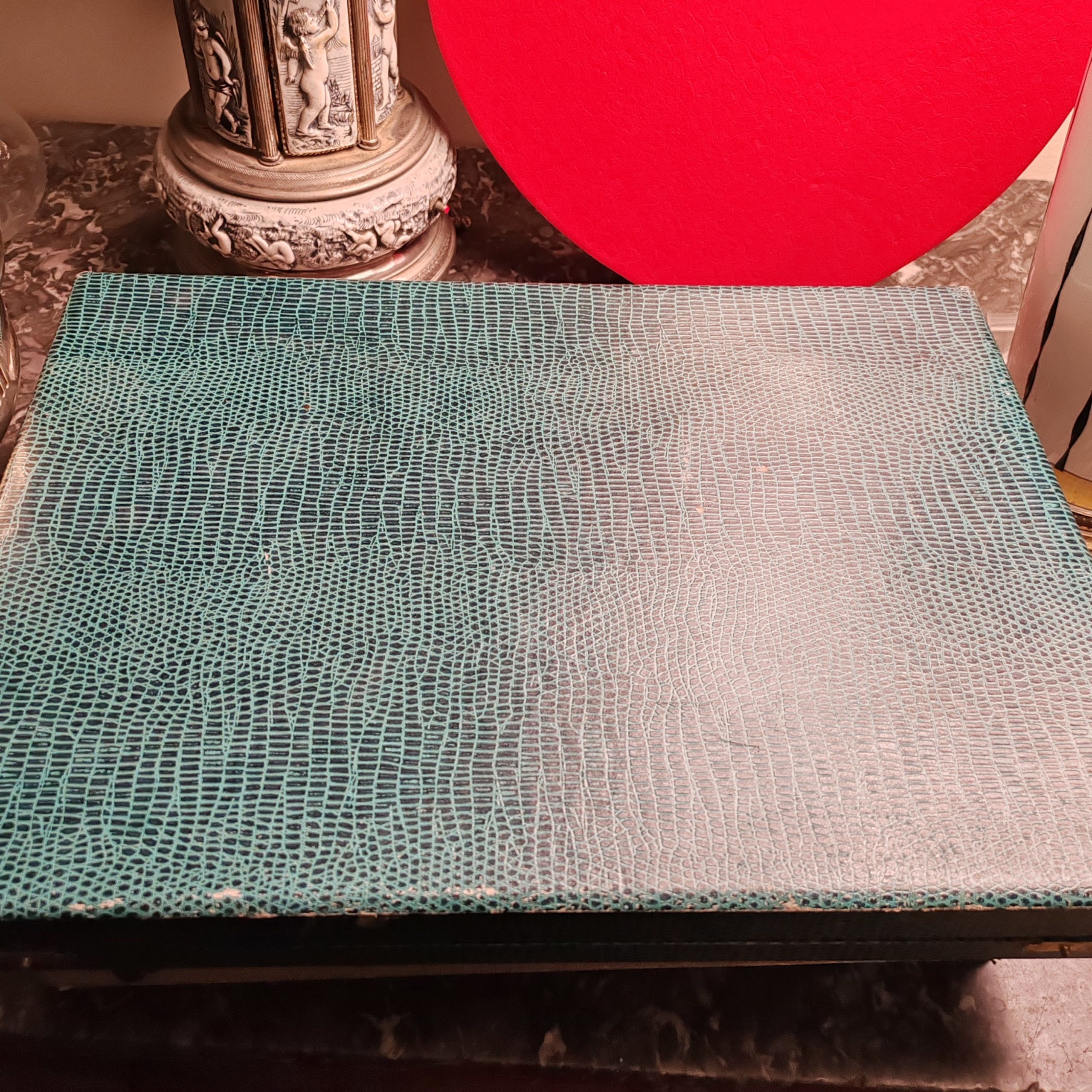 Nécessaire à hors d’œuvre en Métal Argenté dans son Écrin accompagné de ses 3 Raviers en verre taillé épais sans éclats . Quelques traces d’usure sur le plateau, voir photos.
