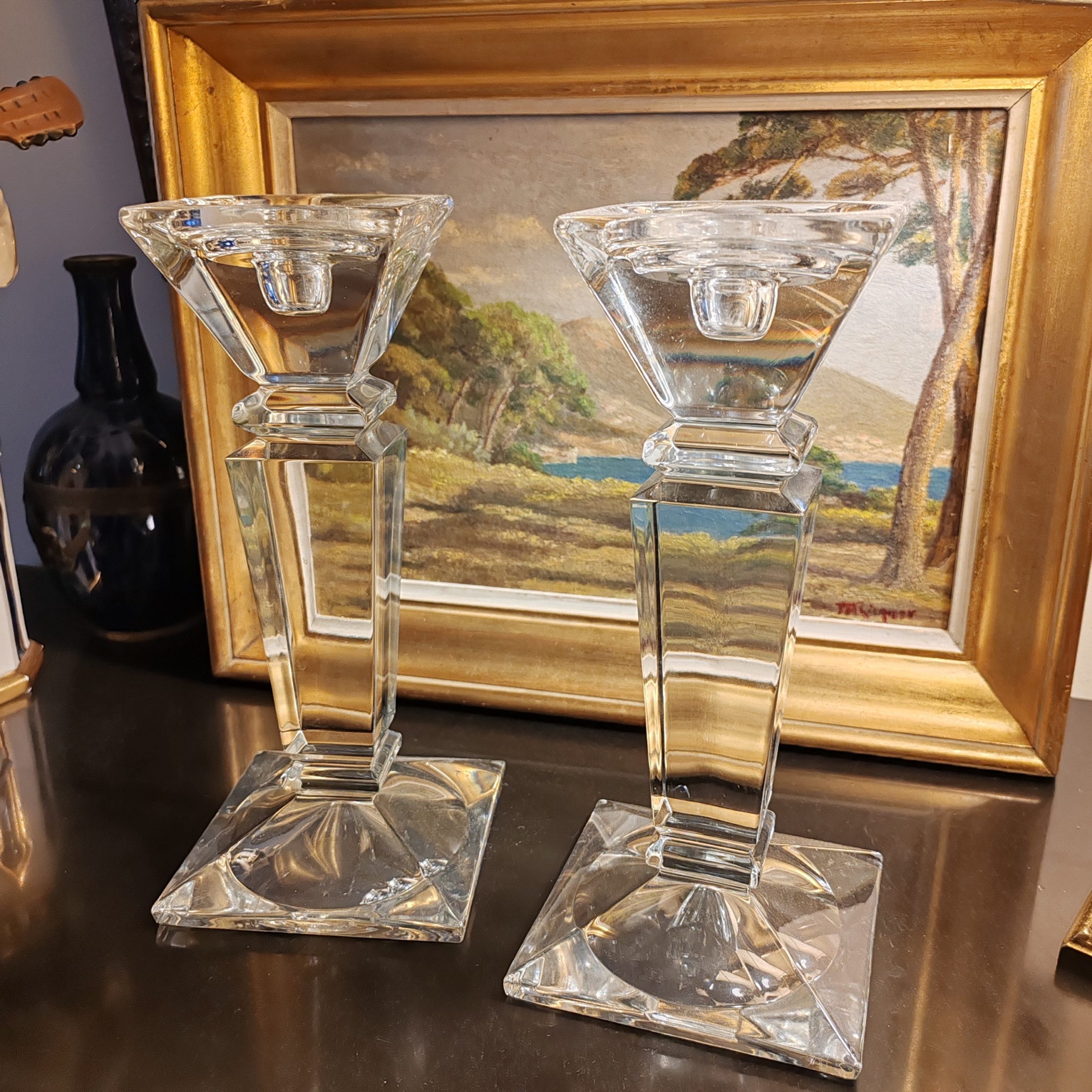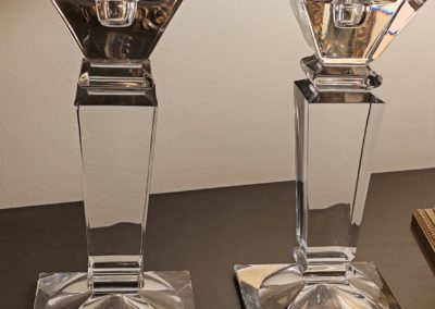 Paire de Bougeoirs- Chandeliers en cristal de bohême, massif, une ligne pure pour plusieurs types de bougie (cierges, bougies cylindriques ou rondes de 5-6 cm de diamètre).