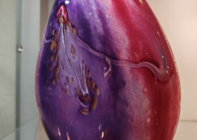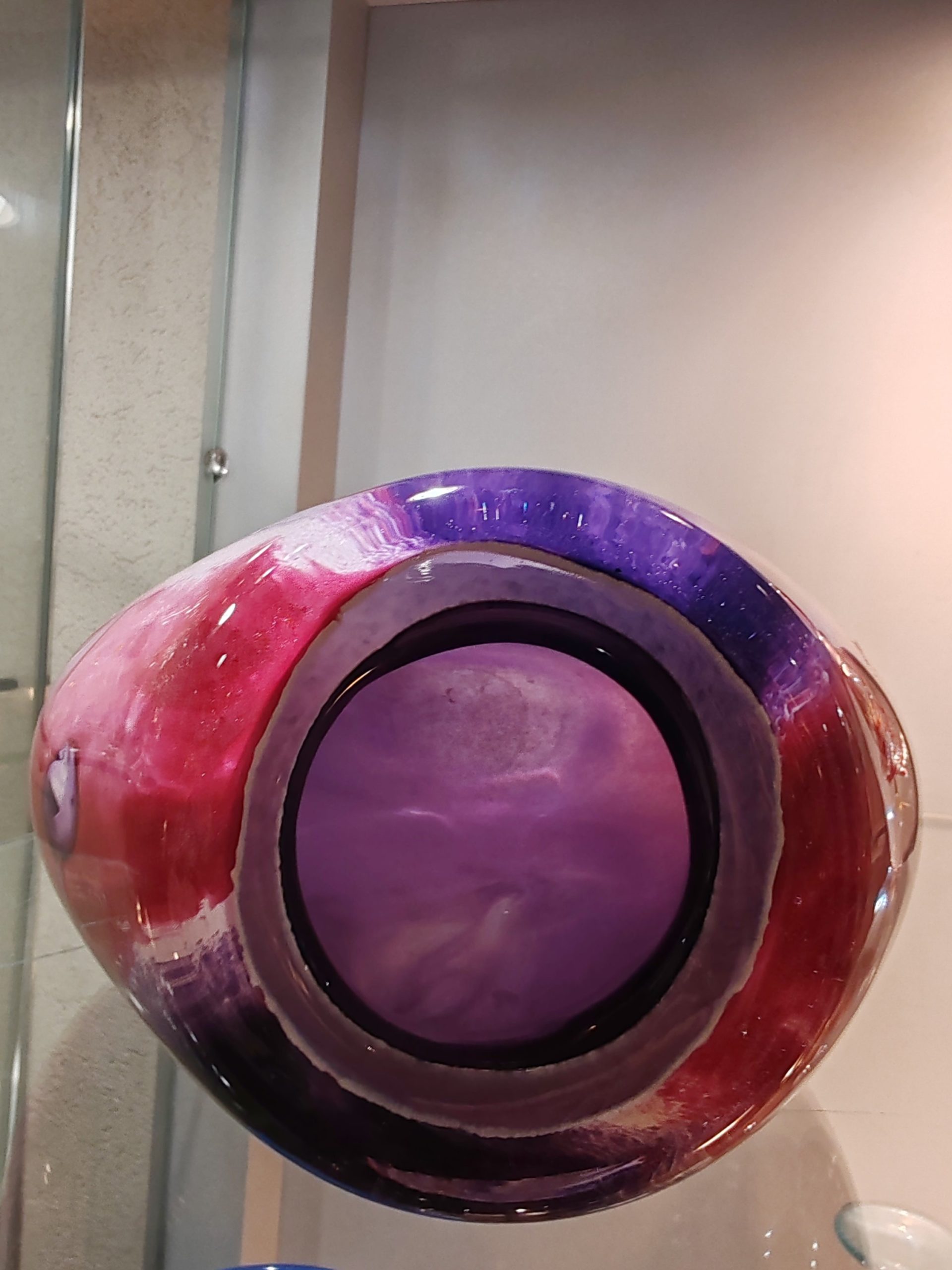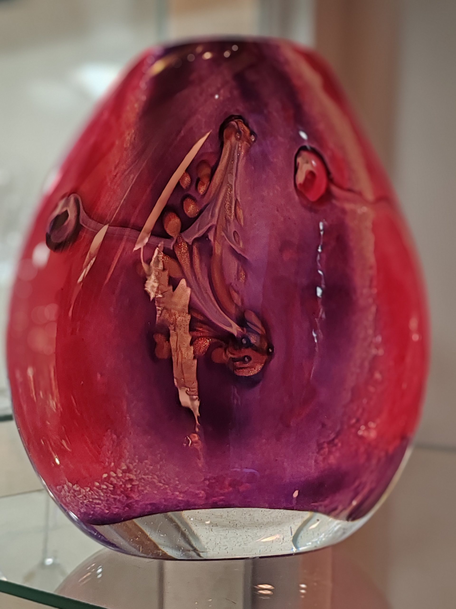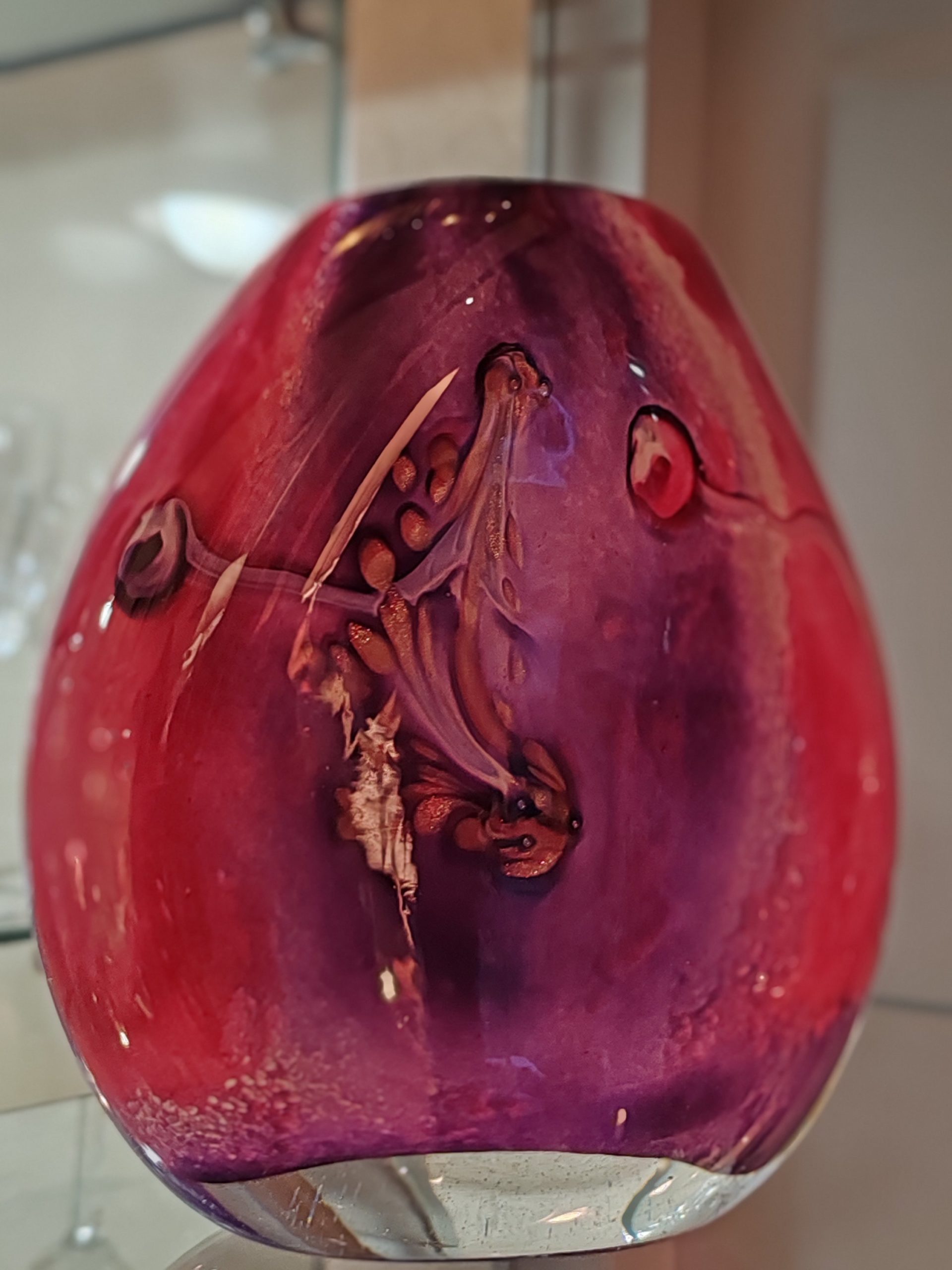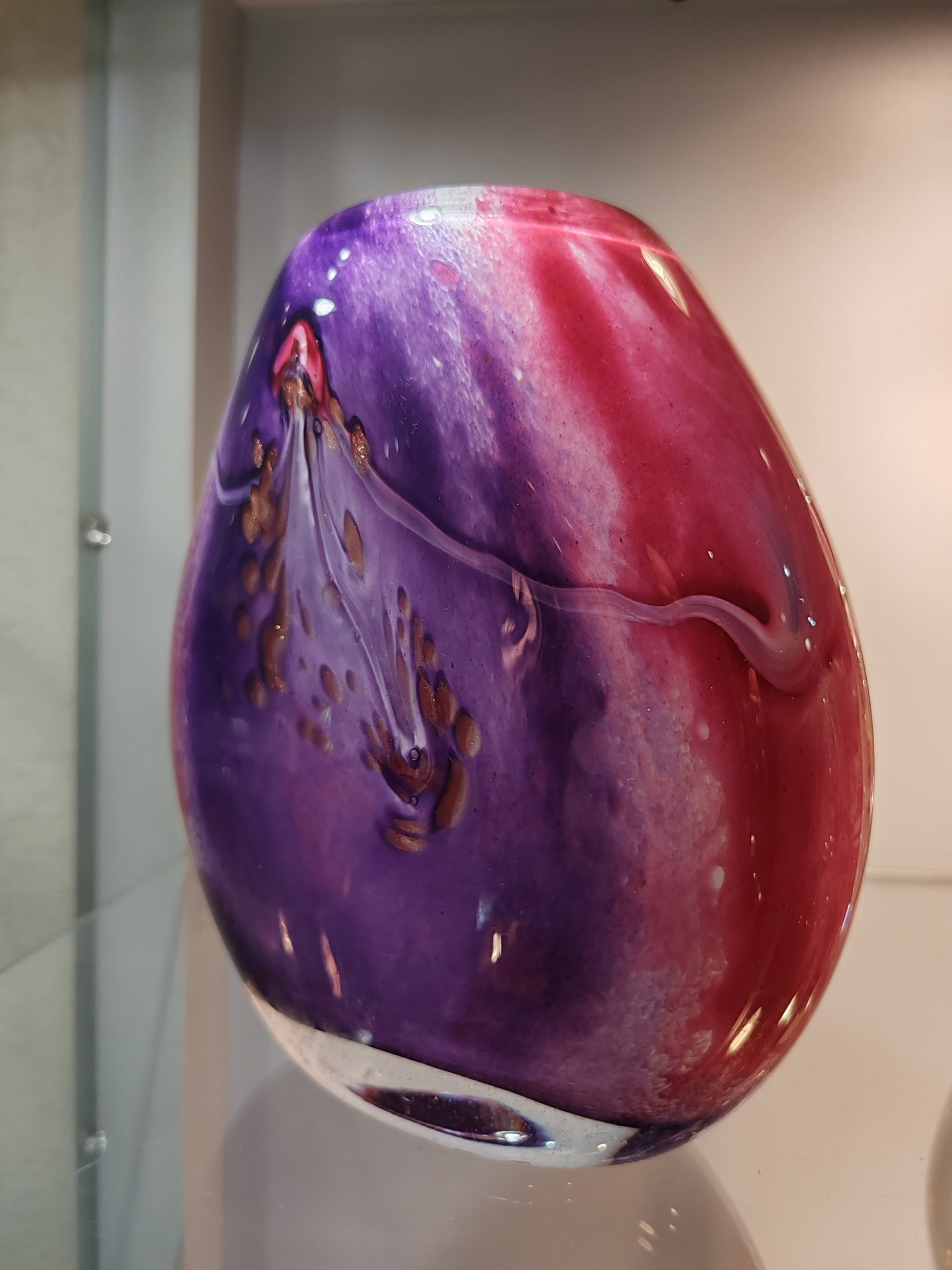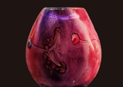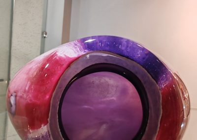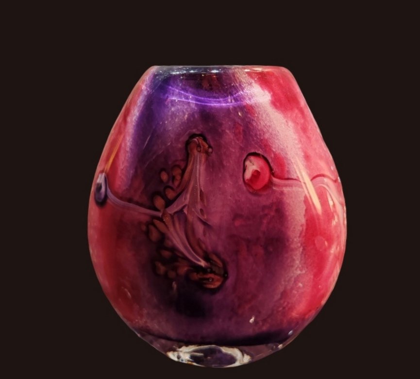 Verre soufflé bouche en forme de Vase. Sculpture d’Art pour décoration. Design exclusif, confection de qualité supérieure, forme originale et couleur flamboyante créé par le Maître Verrier Jean-Luc GAMBIER.