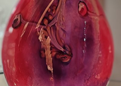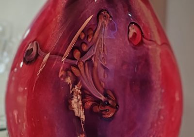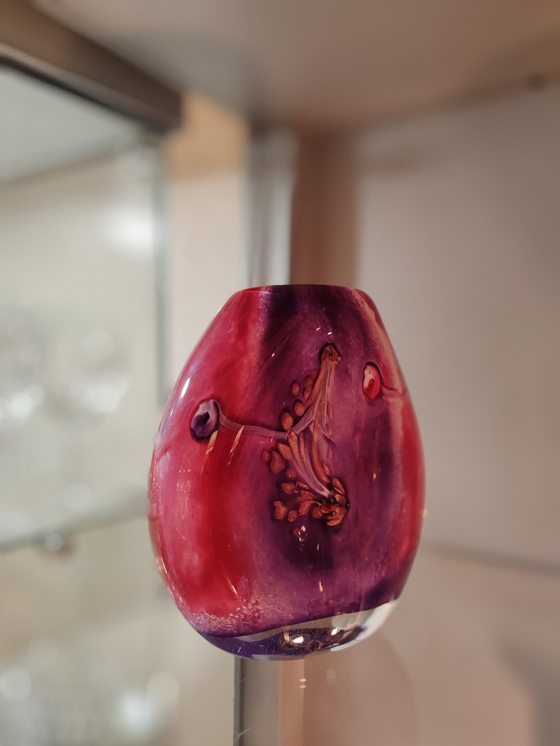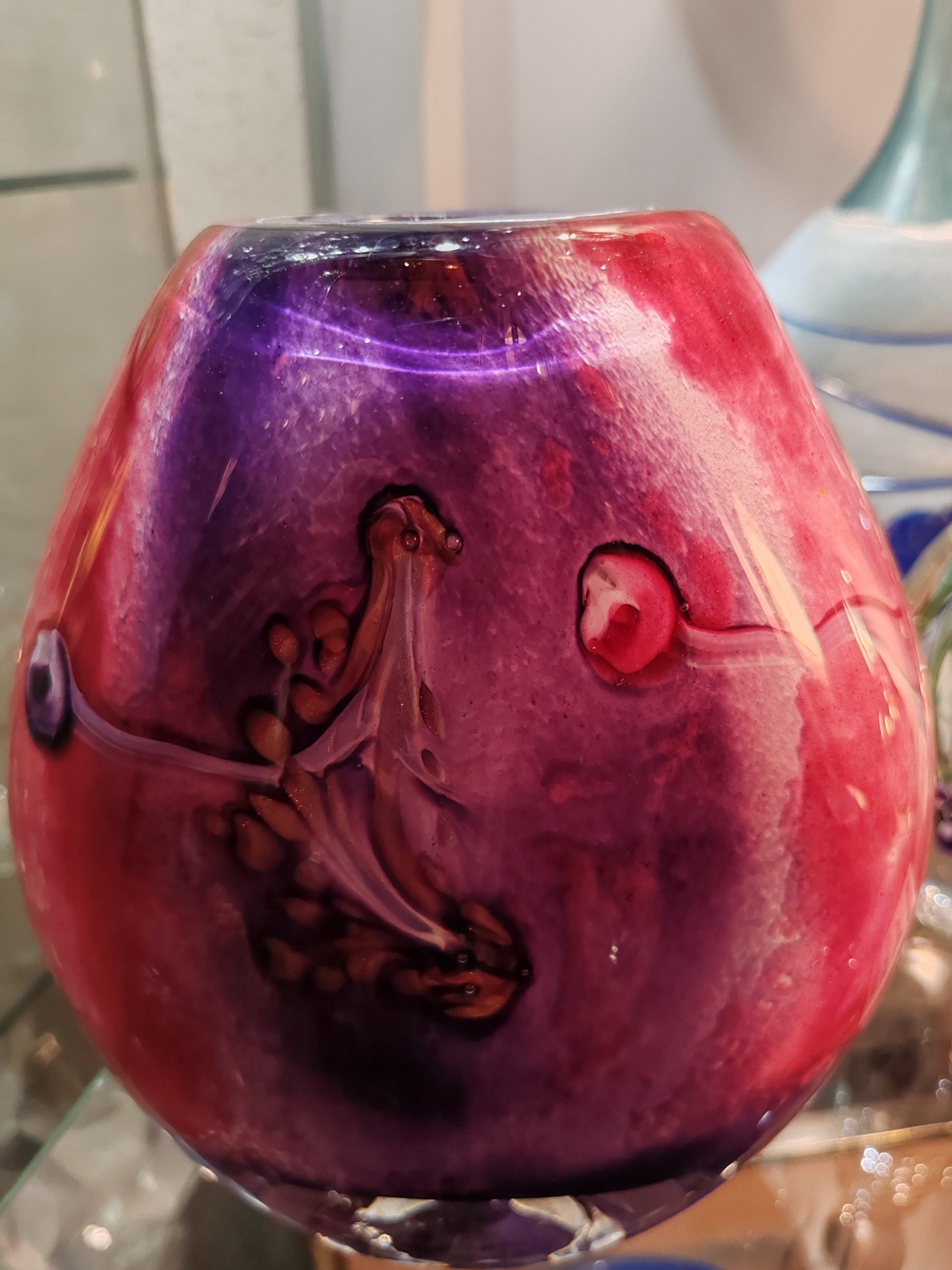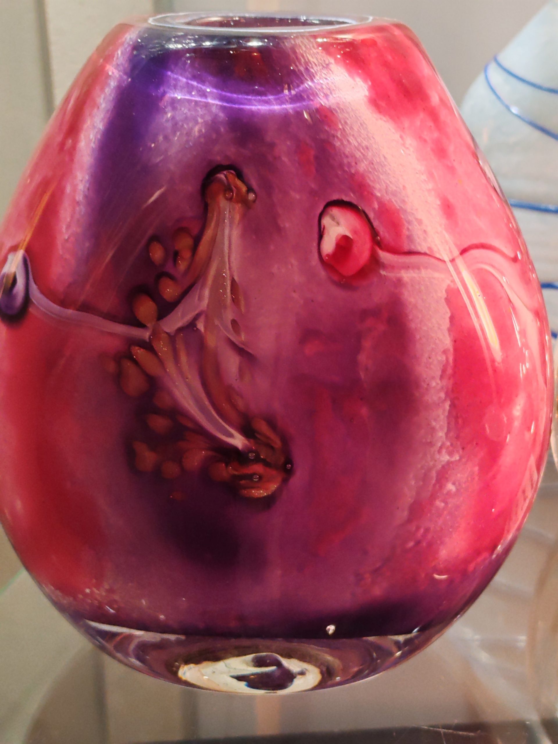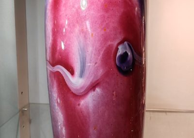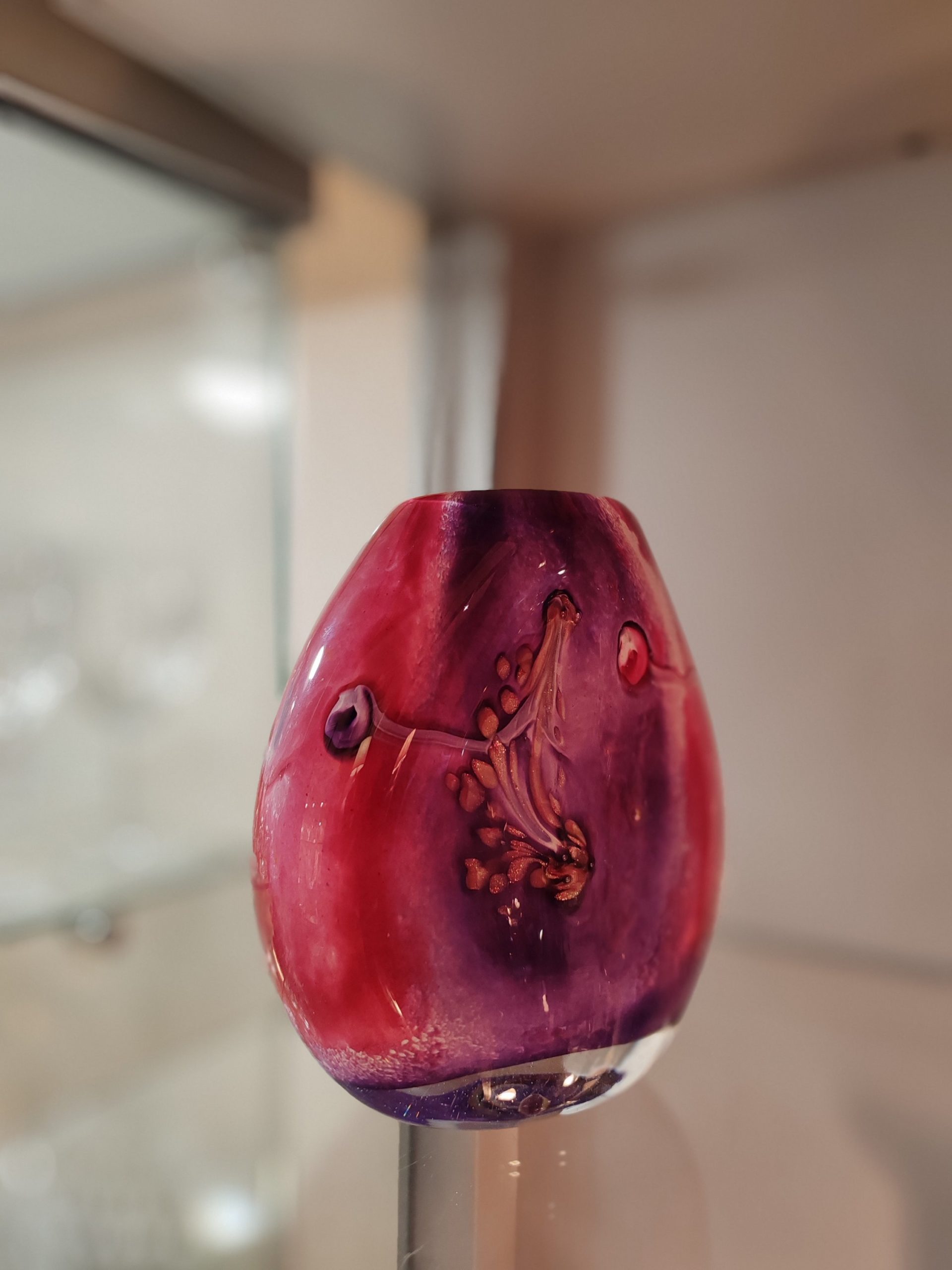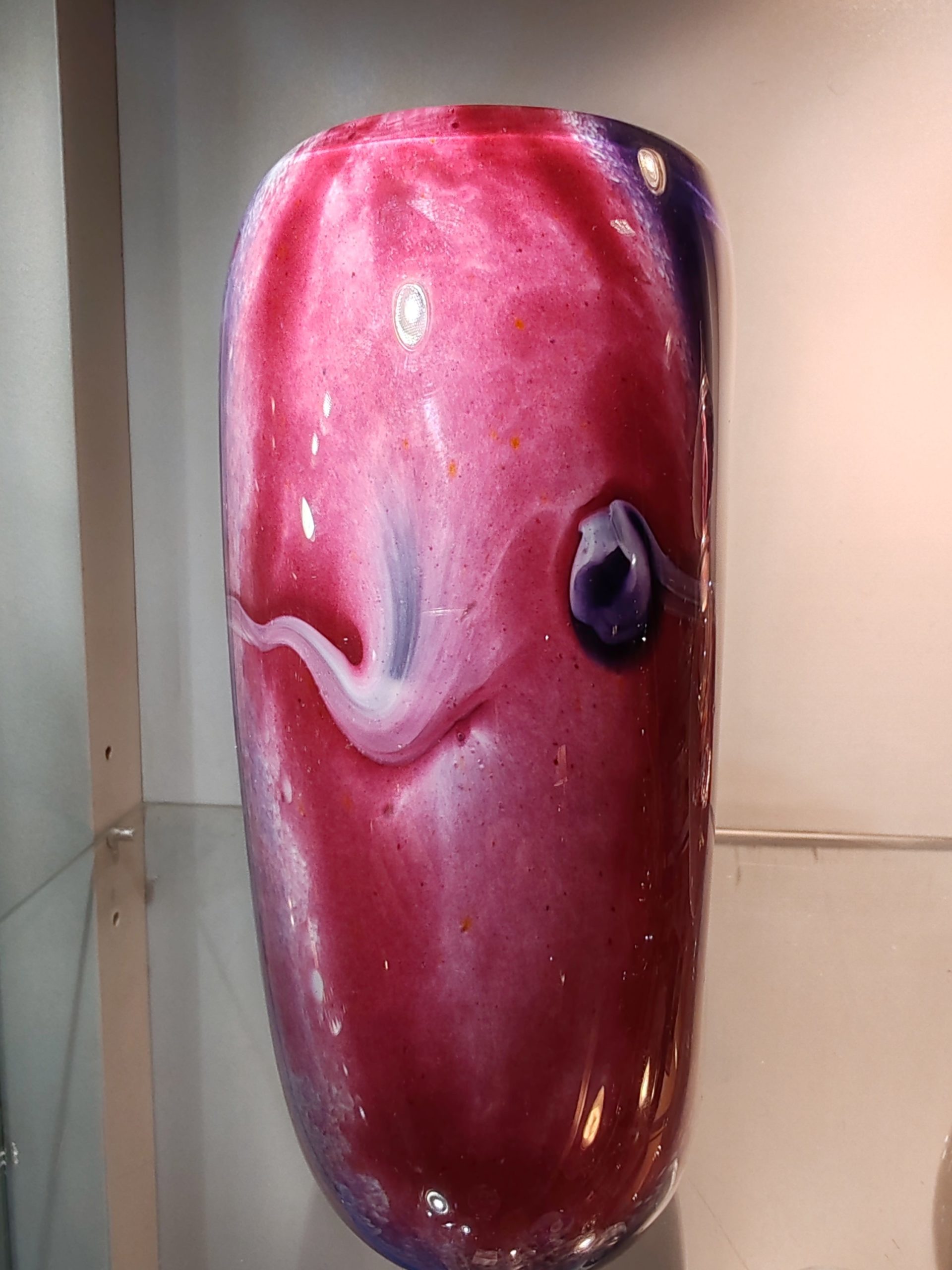 Verre soufflé bouche en forme de Vase. Sculpture d’Art pour décoration. Design exclusif, confection de qualité supérieure, forme originale et couleur flamboyante créé par le Maître Verrier Jean-Luc GAMBIER.
