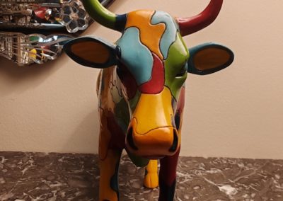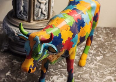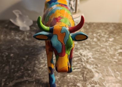 Une vache CowParade n’est pas une simple figurine. C’est une œuvre d’art qui symbolise la tranquillité, la nature et la tradition, mais dans un style moderne et artistique. Celle-ci a été exposée en 2002 à Las Vegas, San Antonio, Sydney, Ventspils, Londres.