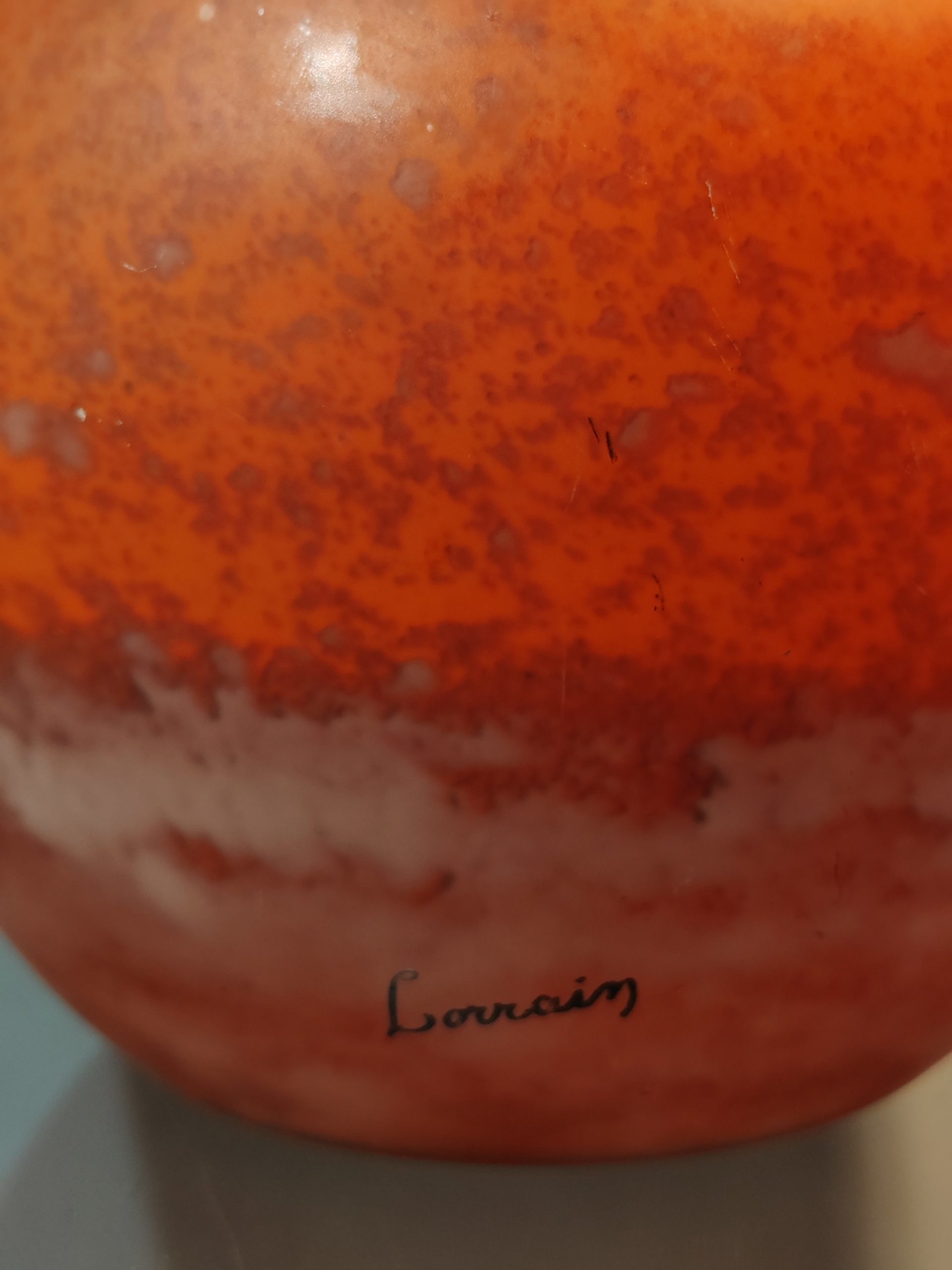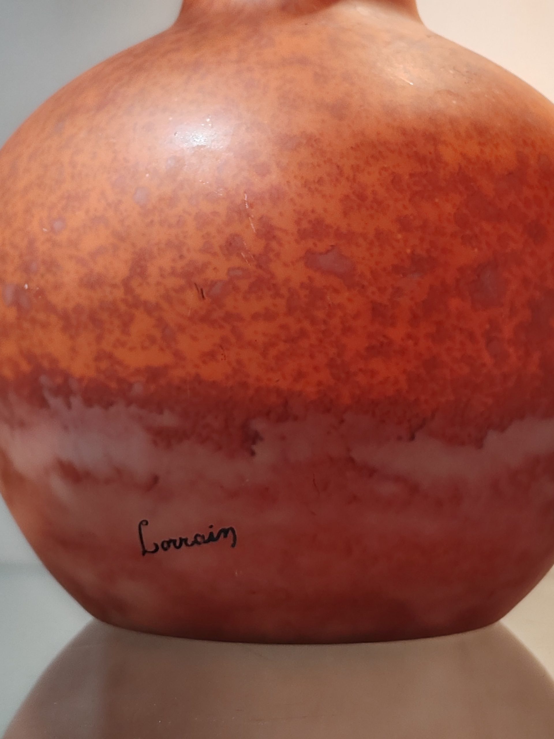 Superbe Vase aux teintes d’un coucher de soleil sur la mer signé LORRAIN sur le bas, fabrique créée par DAUM entre 1925 et 1934