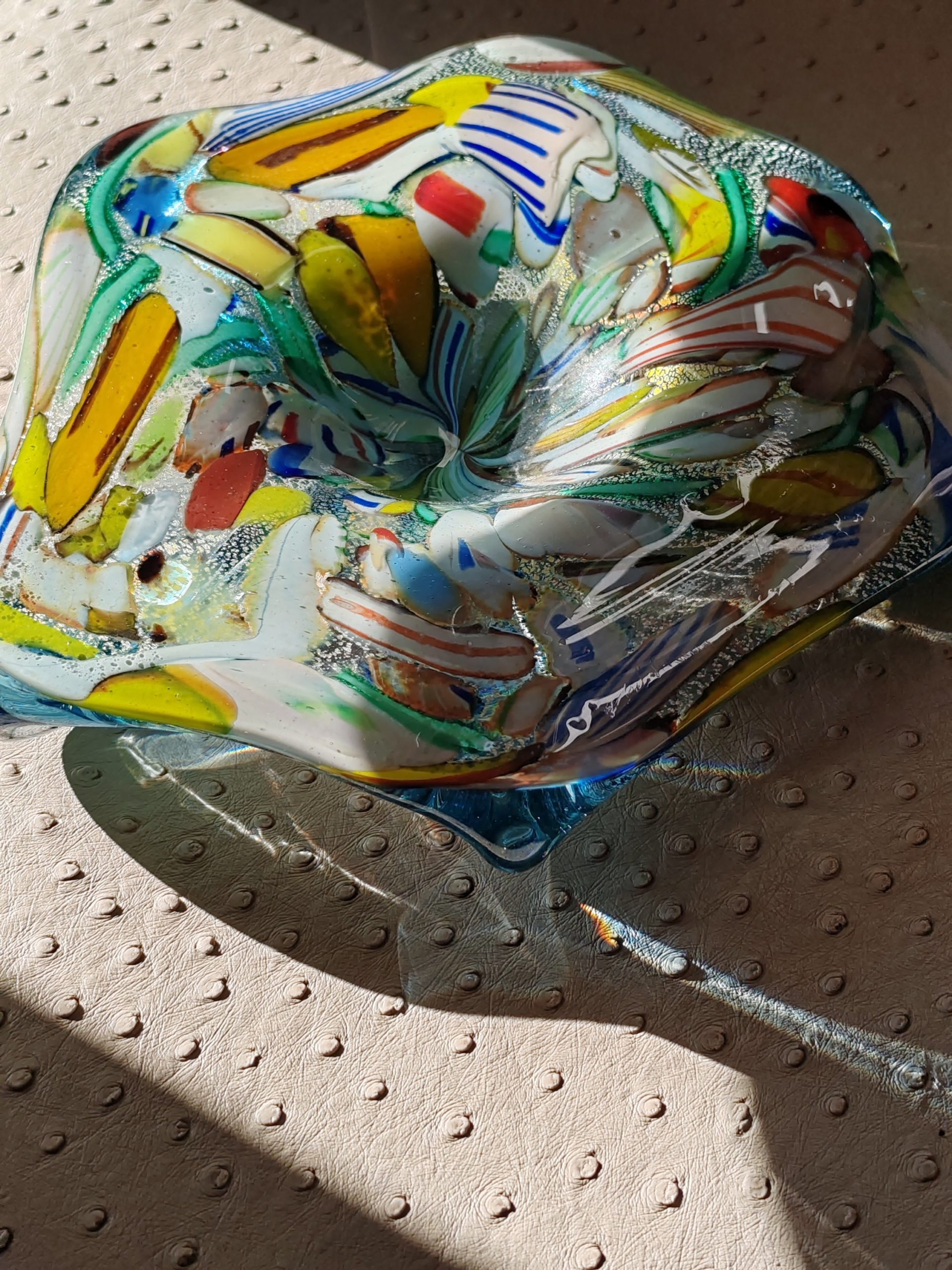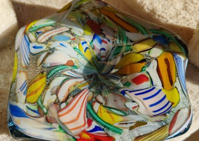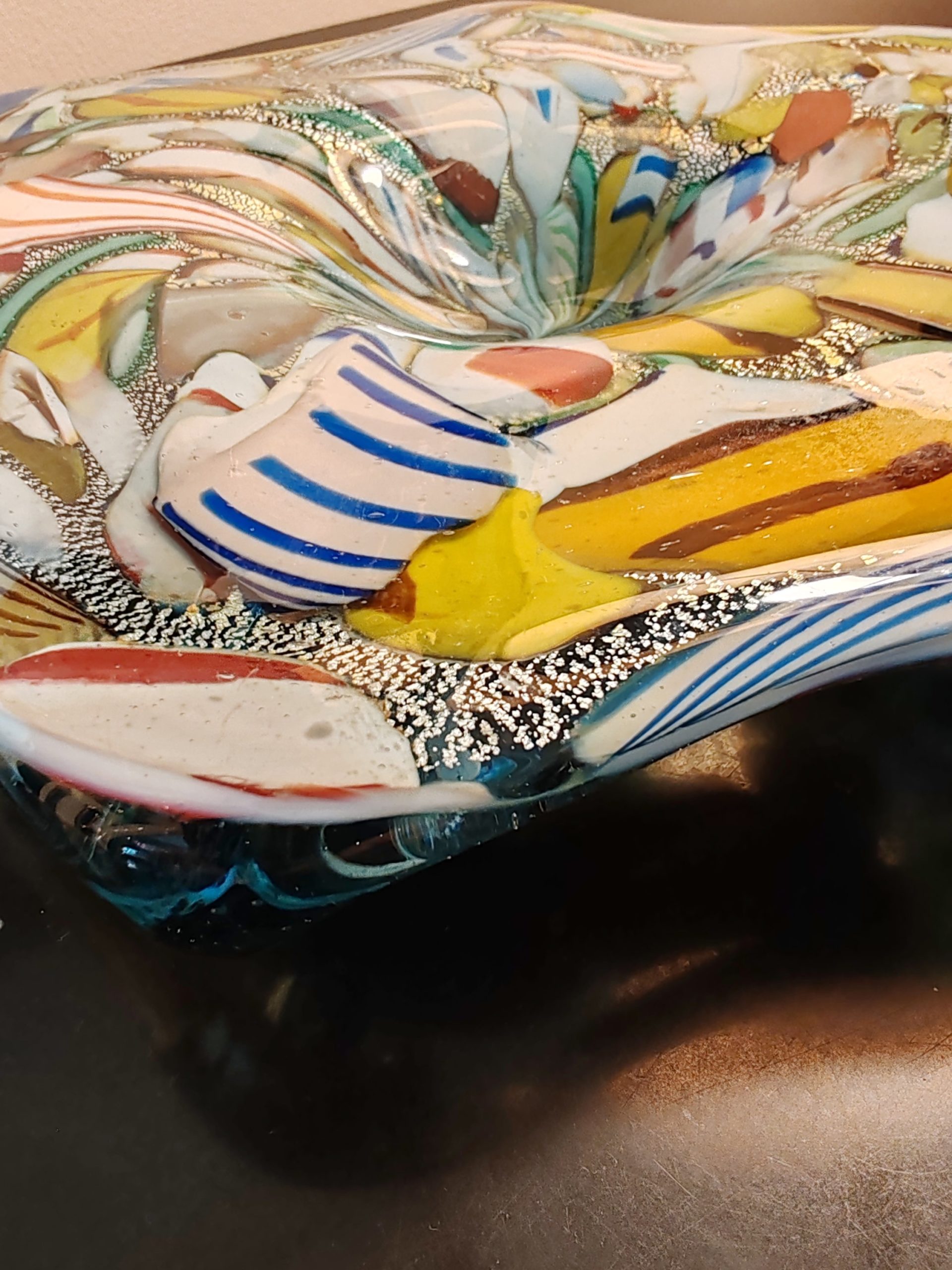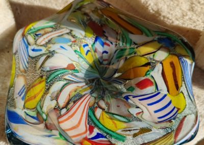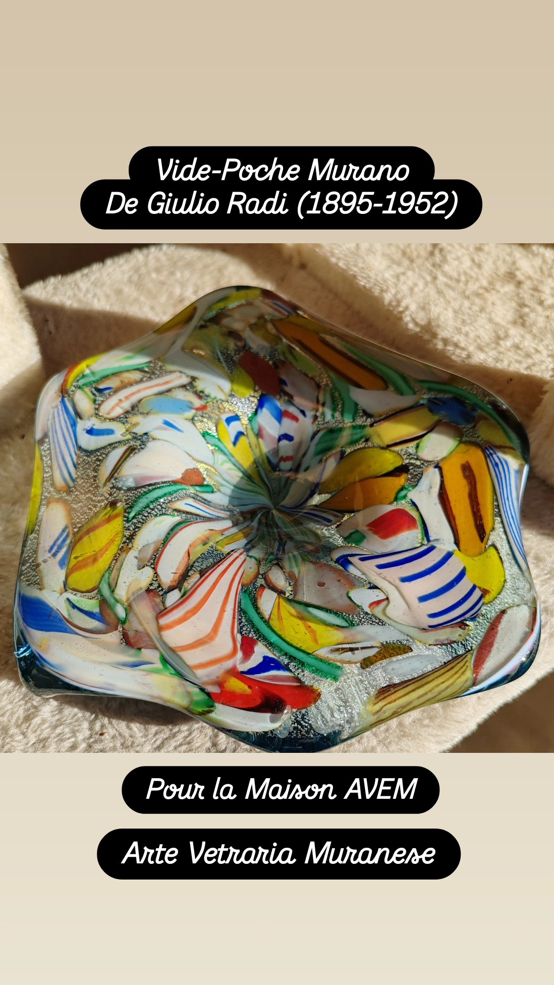 Vide-Poche MURANO de Giulio Radi (1895-1952) pour la Maison Arte Vetraria Muranese qui fut Directeur artistique jusqu’à son décès. Verre polychrome à Murrines et inclusions de feuilles d’or