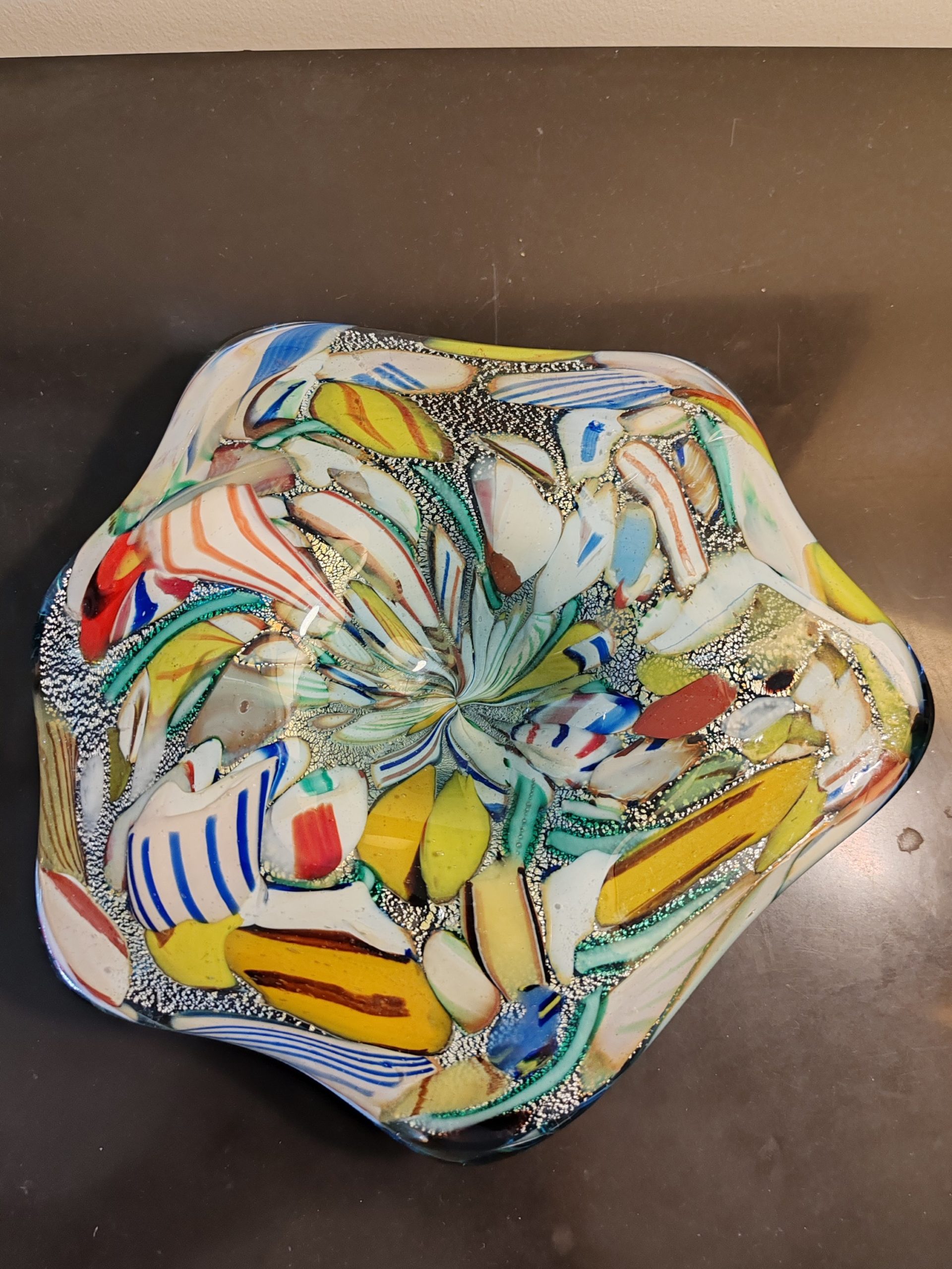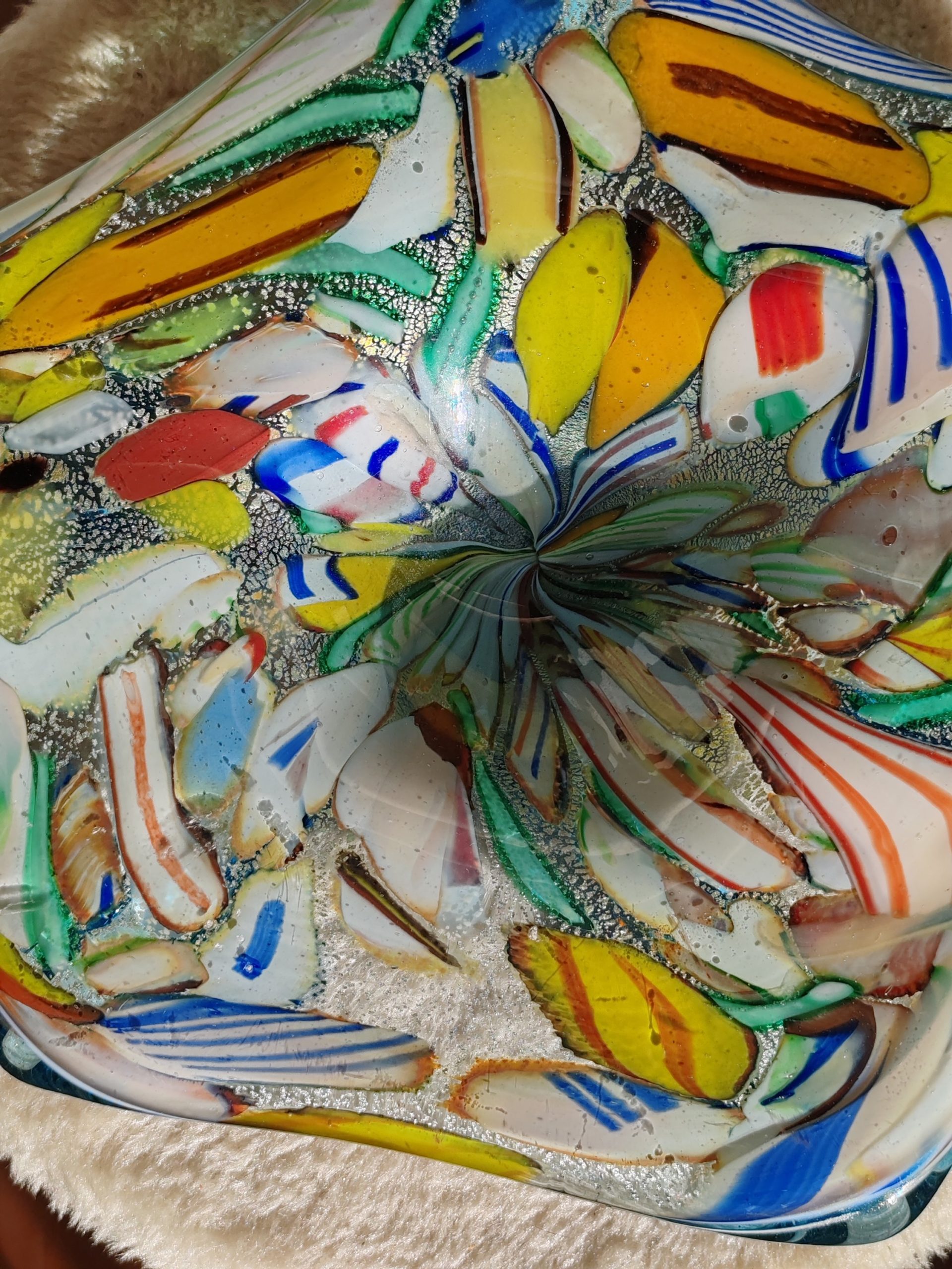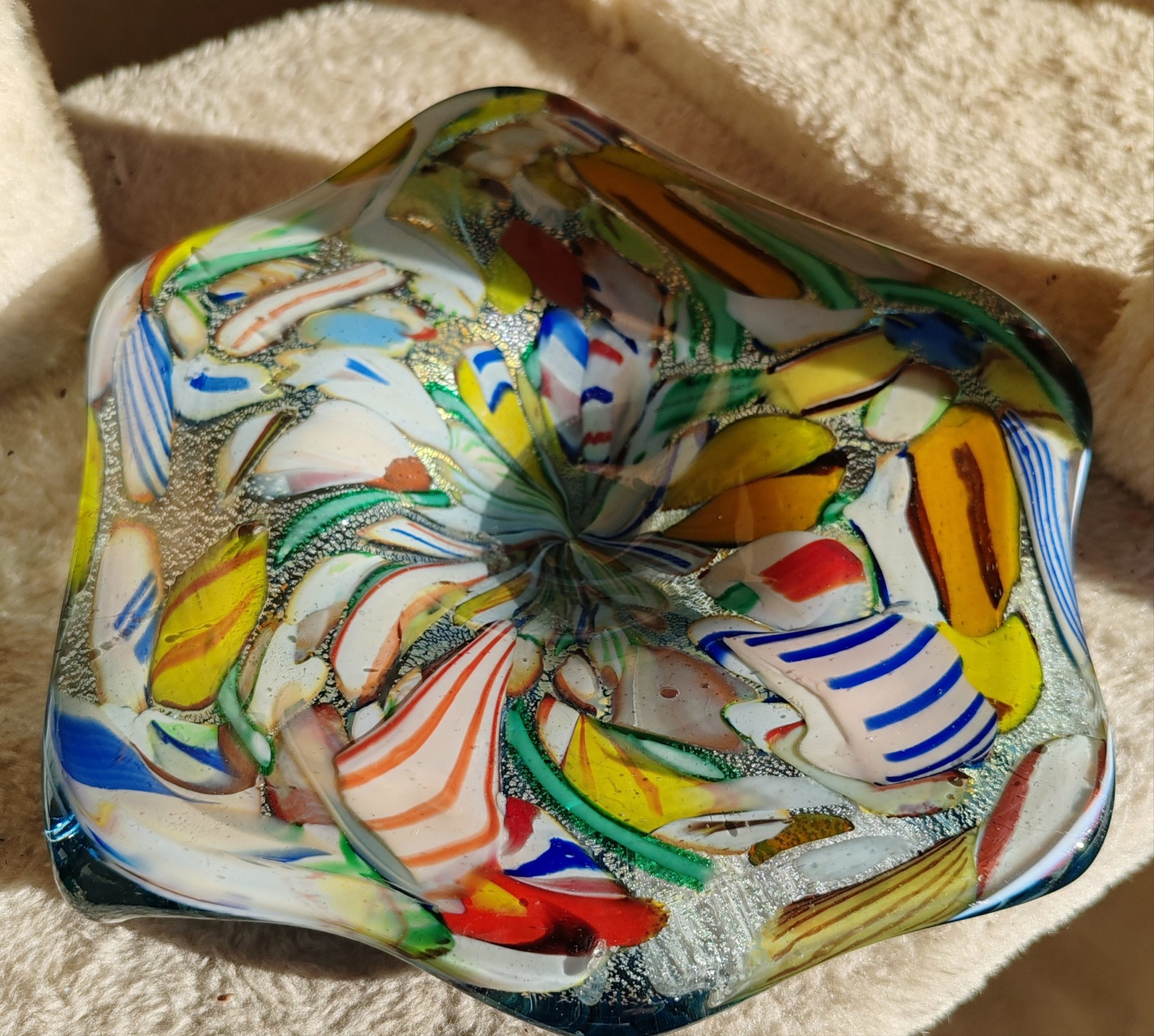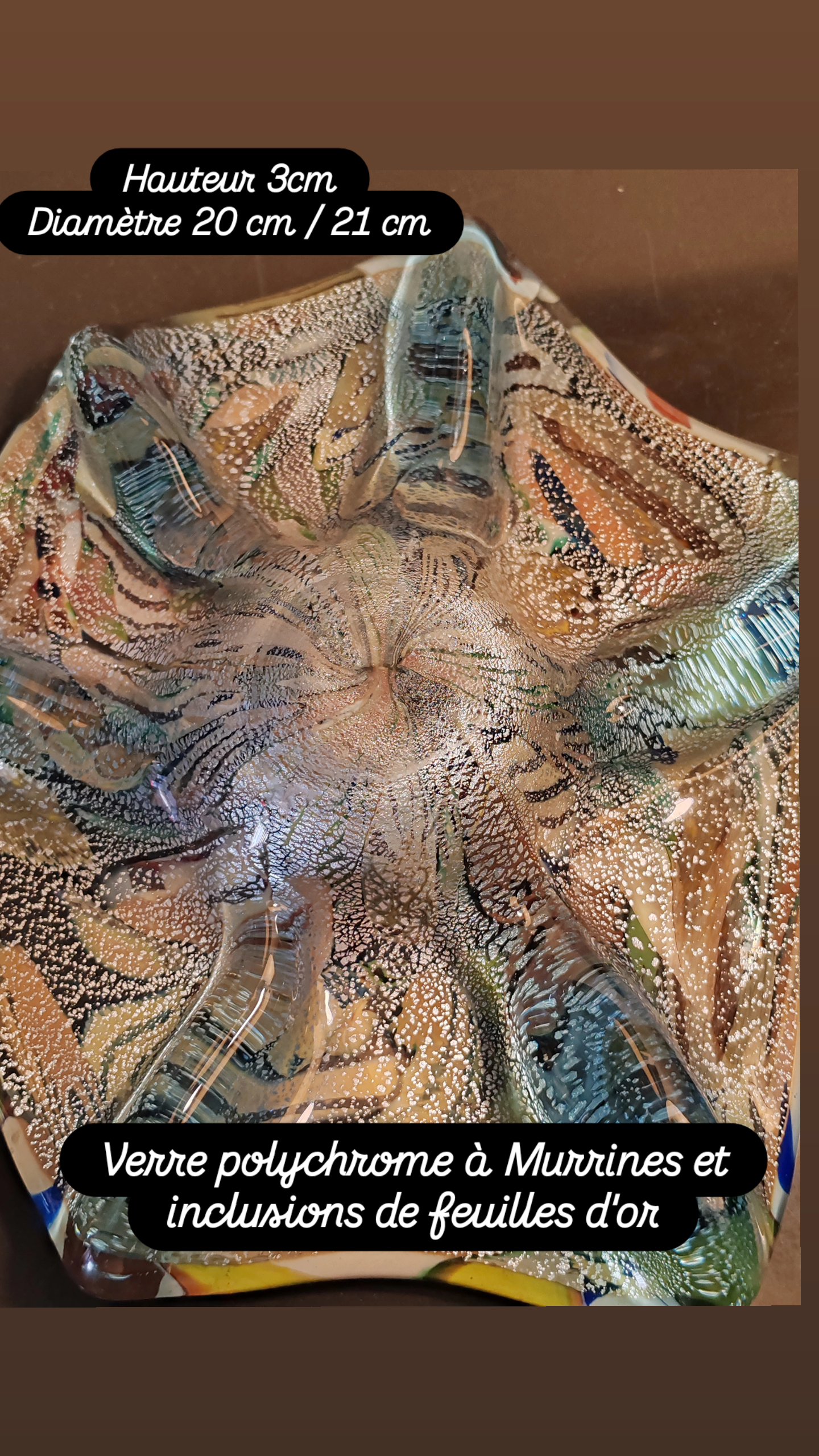 Vide-Poche MURANO de Giulio Radi (1895-1952) pour la Maison Arte Vetraria Muranese qui fut Directeur artistique jusqu’à son décès. Verre polychrome à Murrines et inclusions de feuilles d’or